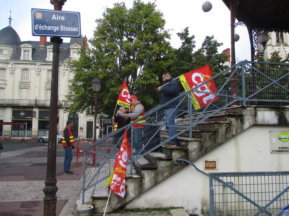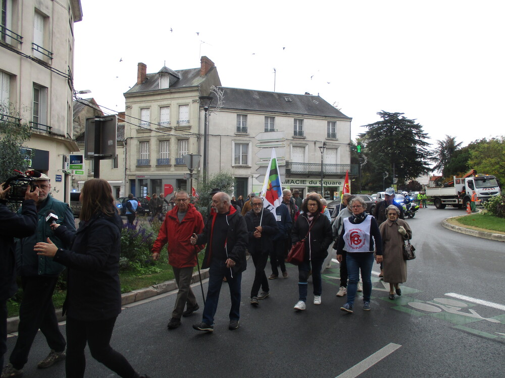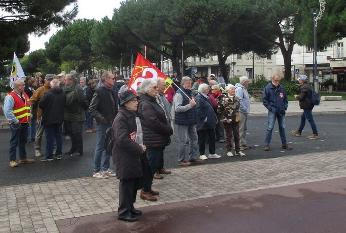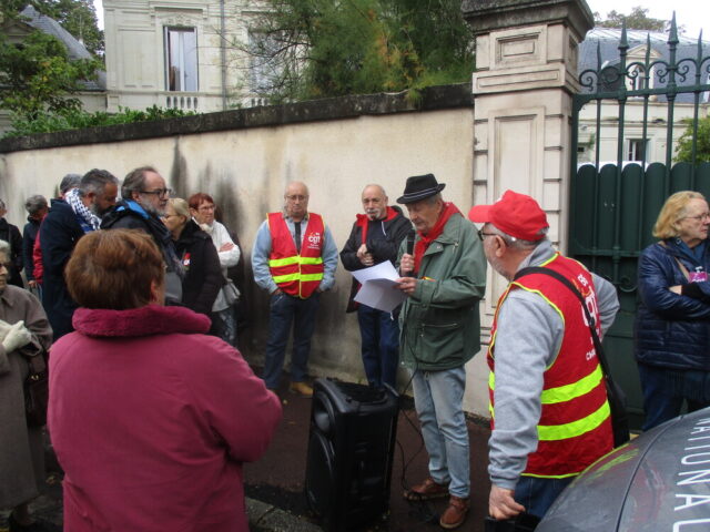 Le rendez-vous était fixé à 10 heures devant la Sous-préfecture. Nous étions une centaine. Une première prise de parole a eu lieu devant les grilles de la sous-préfecture où a été rappelée la revendication d’une revalorisation de toutes les retraites de dix pour cent, largement justifiée par l’inflation, ainsi que la nécessité de défendre tous nos Services Publics.