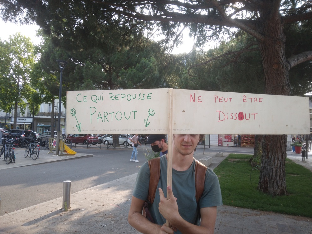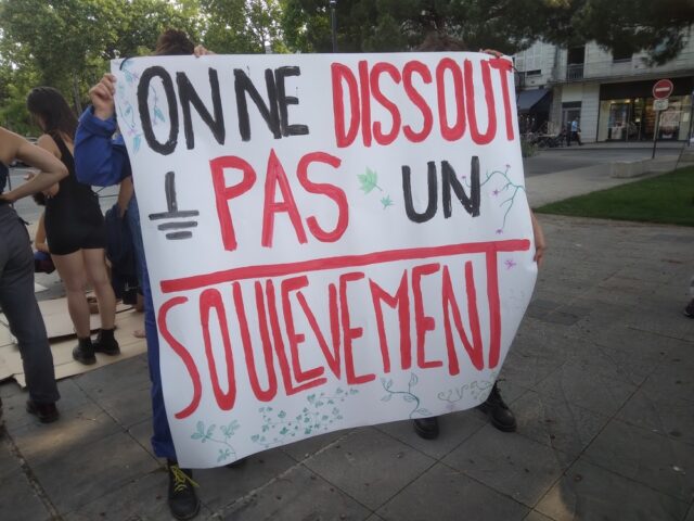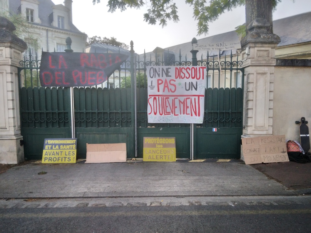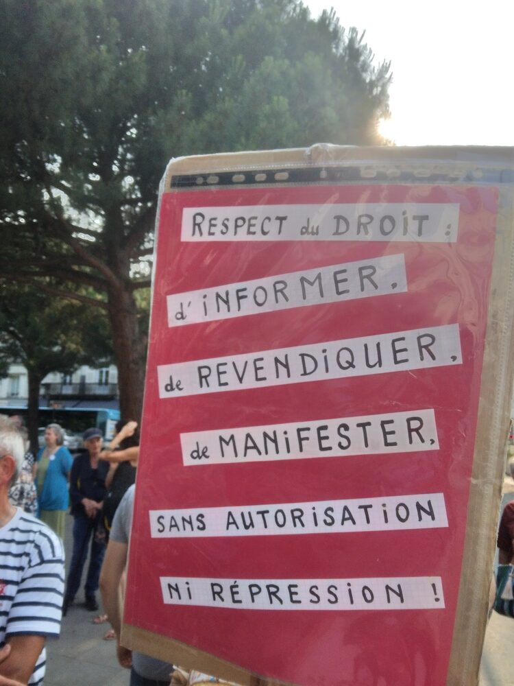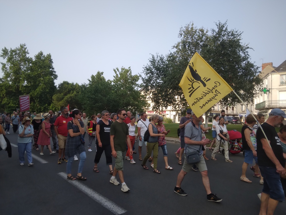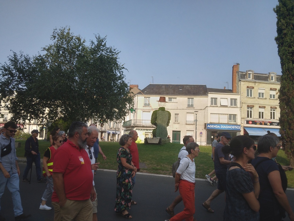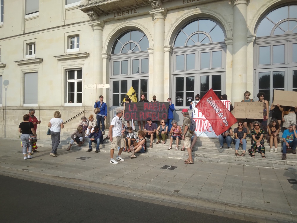 Nous nous sommes rassemblés, environ une centaine, à 18 h 30 devant l’hôtel de ville. Nous sommes partis ensuite en manifestation sur le boulevard Blossac, nous avons contourné le jet d’eau puis avons marché jusqu’à la sous-préfecture. le cortège était dynamique, coloré, avec des jeunes « déter », Parmi les slogans entendus : « La police tue », « La police mutile » et « Châtell Antifa » …