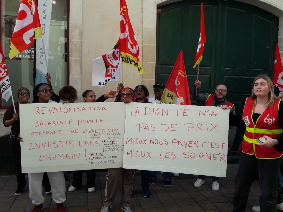 Depuis mardi les salarié-es de plusieurs EHPAD du groupe Vivalto Vie sont mobilisées pour leur salaire avec la CGT (nous y reviendrons) https://www.lanouvellerepublique.fr/poitiers/des-aides-soignants-syndiques-a-la-cgt-interpellent-francois-blanchard-qui-denonce-une-instrumentalisation-politique-1772043875