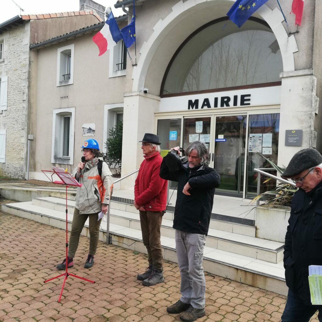 … au commissaire enquêteur chargé de recueillir les avis des associations, citoyen.nes,… sur les projets de « bassines » prévues sur le bassin de La Pallu. Enquête dont nous ne rappellerons pas les conditions de mise en œuvre : la période « très favorable » de fin d’année, les conditions d’accès aux informations, etc… etc. D’où l’organisation du « comité de départ » fait à l’enquêteur qui doit donner un avis circonstancié dans les prochaines semaines…