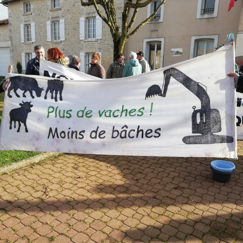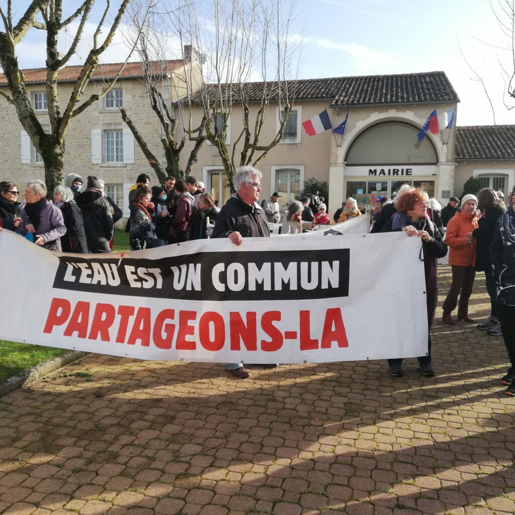 Vendredi 13 janvier donc, dernier jour de cette « enquête publique » et manifestation anti bassines à Champigny en Rochereau. Des photos ci-dessous.