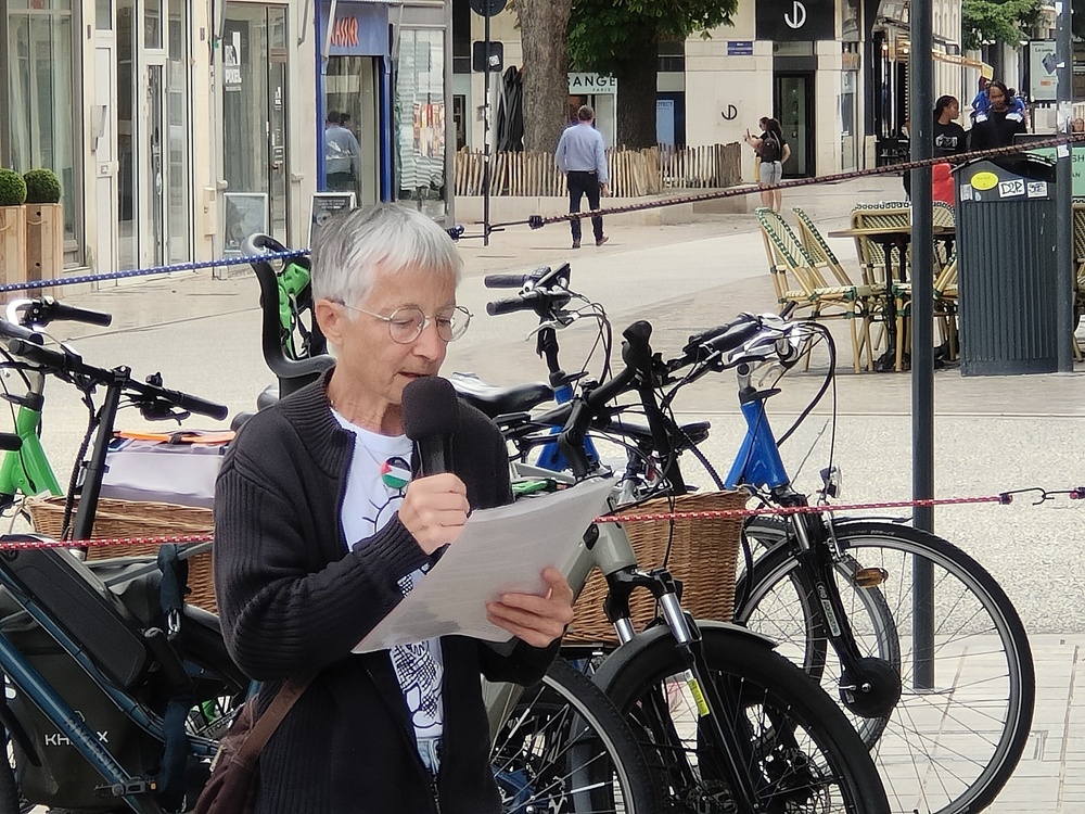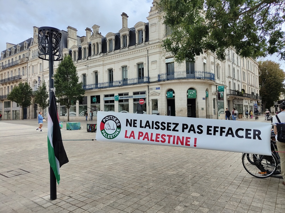 Des poèmes palestiniens ont été lus, en français et en arabe, le Comité Poitiers Palestine a lu une déclaration sur l’actualité du génocide et de l’inaction des gouvernements européens dont le nôtre.