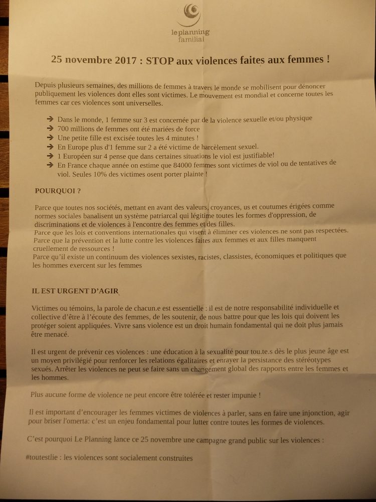 Le samedi 25 novembre 2017 à l’appel du Planning Familial