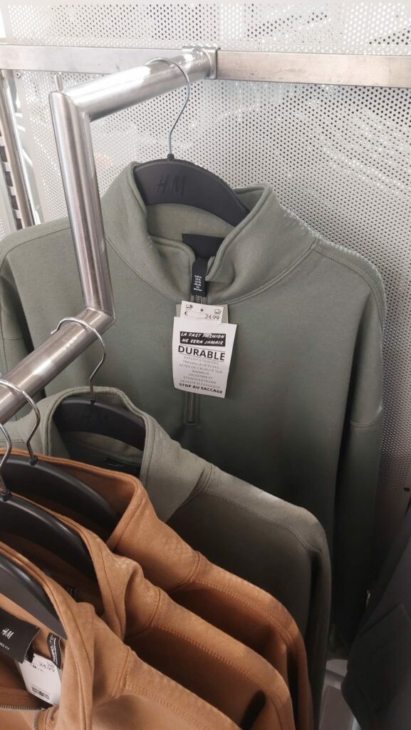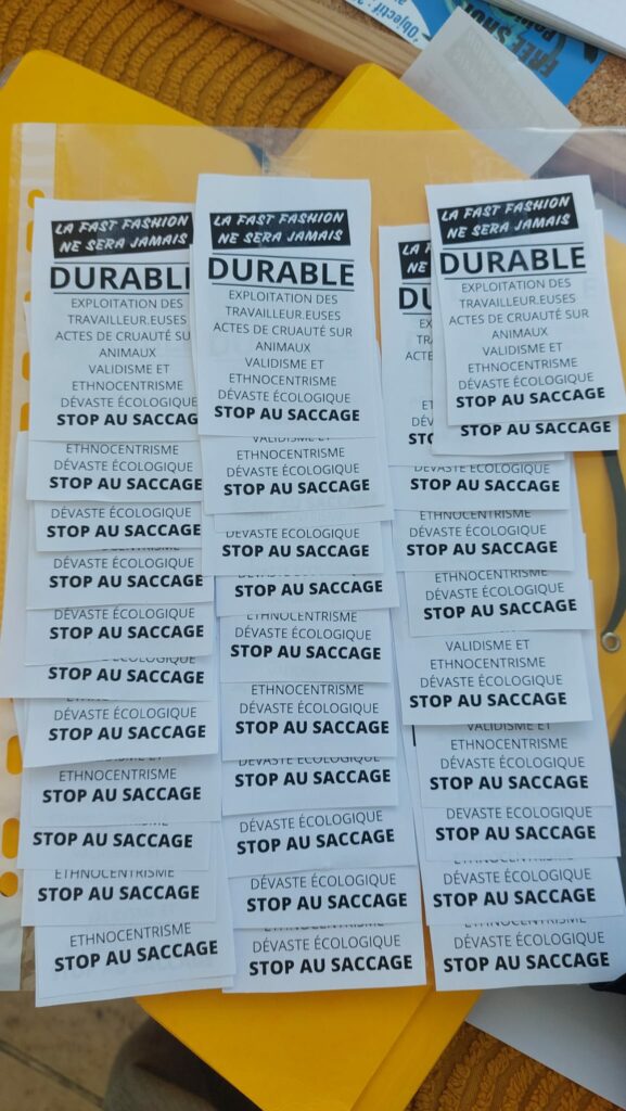Il ne restait plus qu’à les remplir de petites étiquettes expliquant les problèmes qu’entraîne la « Fast Fashion » et à les accrocher aux vêtements sur lesquels certains se ruent en étant persuadé de faire une bonne affaire… une bonne affaire, sûrement, mais à quel prix ? Celui du dévaste écologique ou de celui des travailleurs exploités ? C’est au choix !