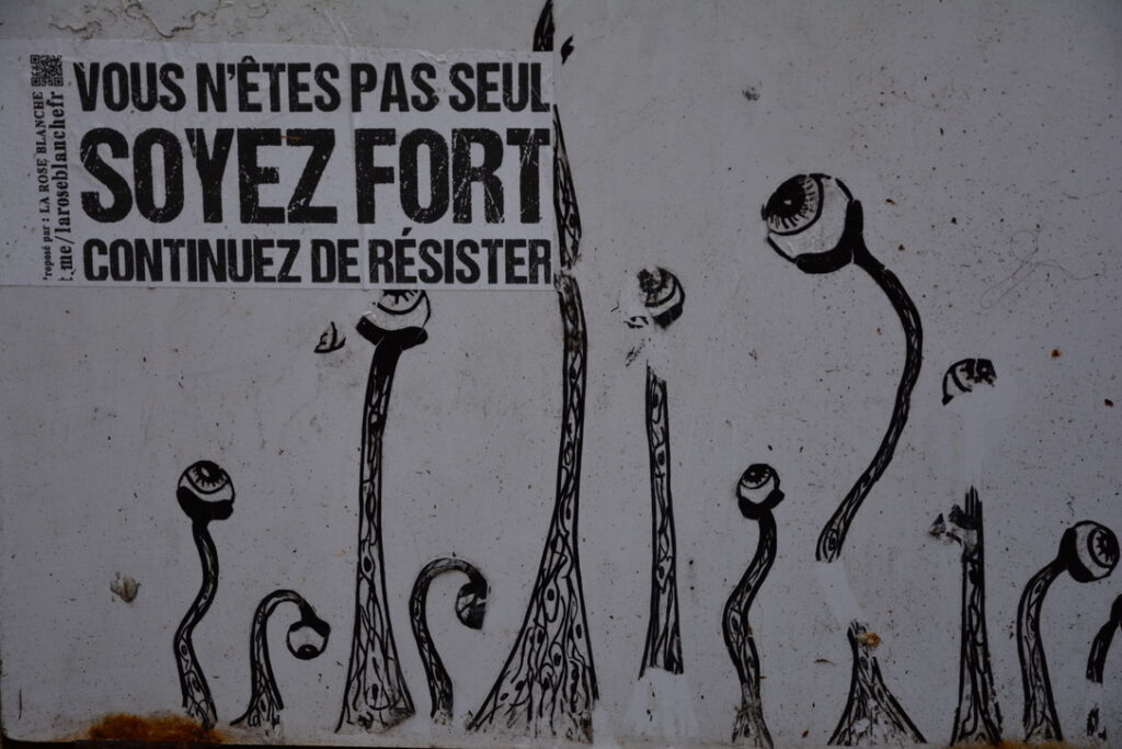Les rues (les murs notamment mais pas que…) restent des lieux pour une expression poé.li.tique souvent percutante, drôle et inspirée qui gagne à être mise en valeur. En voici ci-dessous, quelques exemples glanés au détour d’une rue…