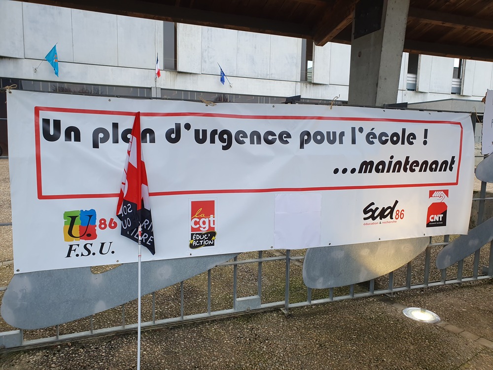 Un rassemblement de moins de 100 enseignant-es devant le collège Jules Verne de Buxerolles a été suivi par une Assemblée Générale dans les locaux syndicaux de la FSU où se sont retrouvé-es des représentant-es de la plupart des établissement de la Vienne. L’action ne fait que commencer.