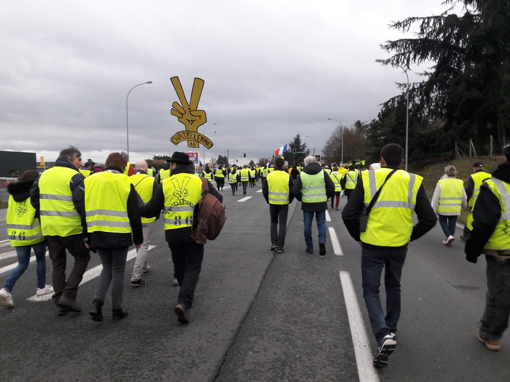 A l’appel de la CGT, de Solidaires, de la FSU et des gilets jaunes, une manifestation de plusieurs centaines de personnes s’est élancée de la gare de Poitiers avec un arrêt devant le palais de justice (et un hommage rendu aux nombreuses personnes arrêtées et blessées ces dernières semaines lors des manifestations) avant de partir en direction de la préfecture (dispositif policier bien « léger » par rapport à ce qu’on a vu ces derniers temps…) et une arrivée devant la mairie de Poitiers. Plusieurs dizaines de personnes sont ensuite parties en cortège pour un temps de débat aux Salons de Blossac.