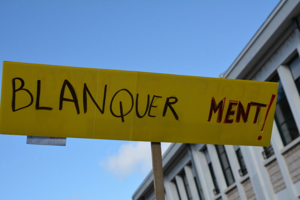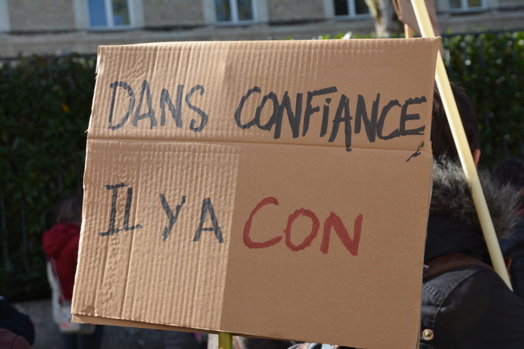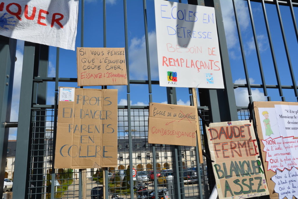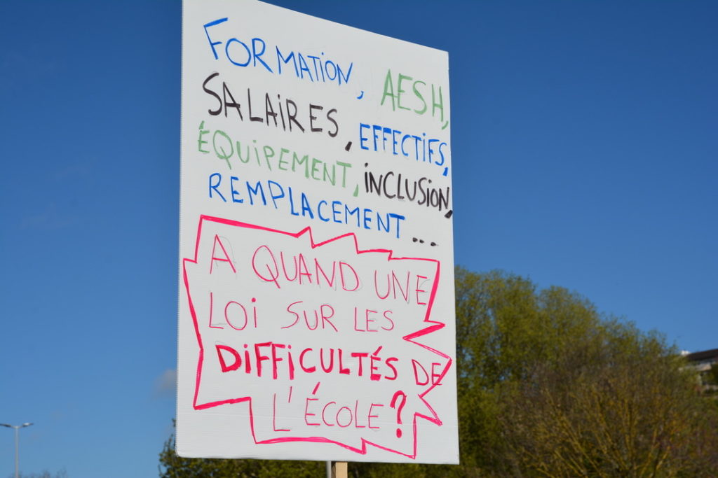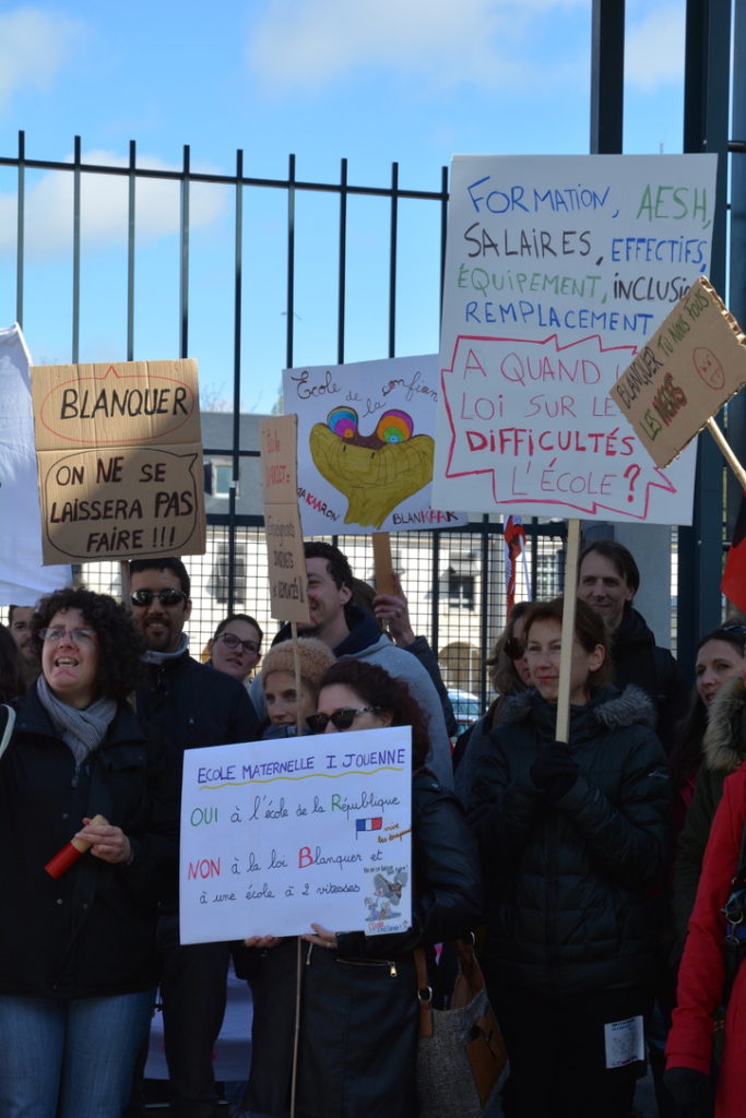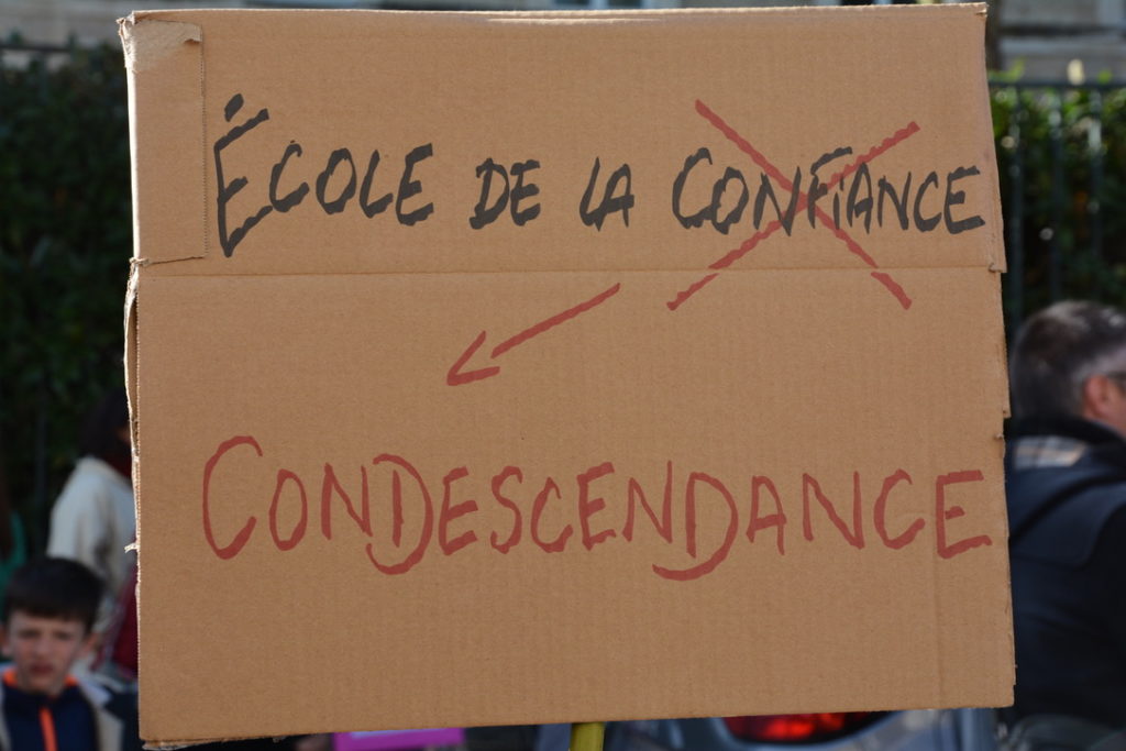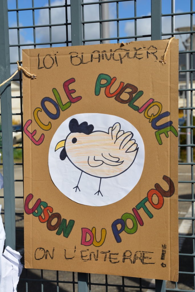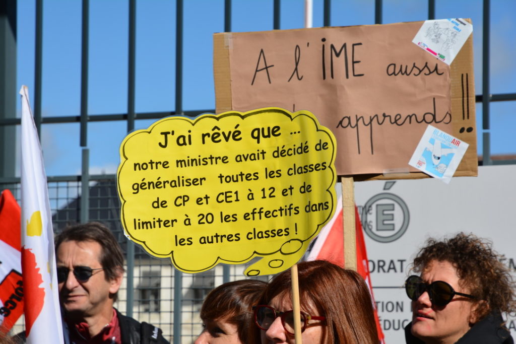 Parmi les présents à la manifestation, une bonne majorité d’enseignant.e.s des écoles qui se signalaient par des pancartes ou banderoles portant leurs noms. Ce qui est assez nouveau dans les manifs ! De nombreuse pancartes originales avec des slogans qui ne l’étaient pas moins…