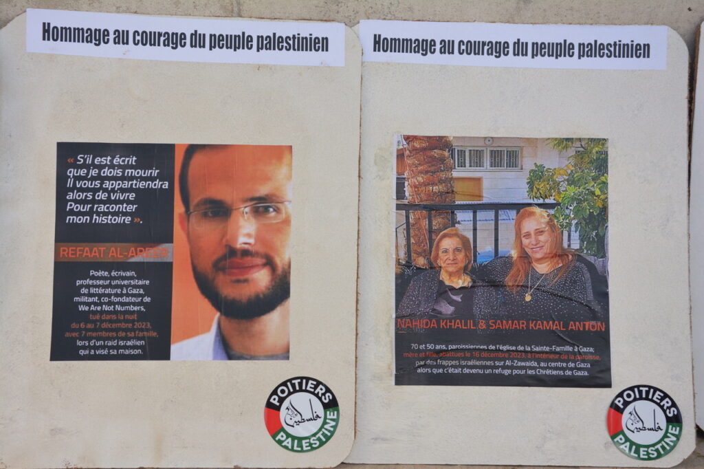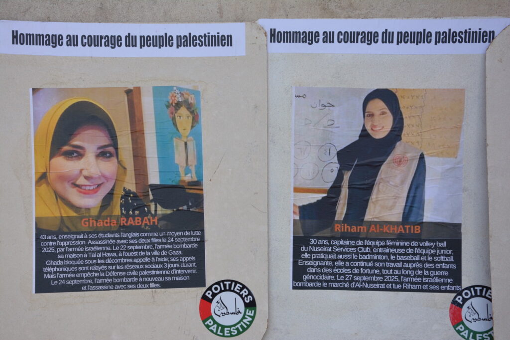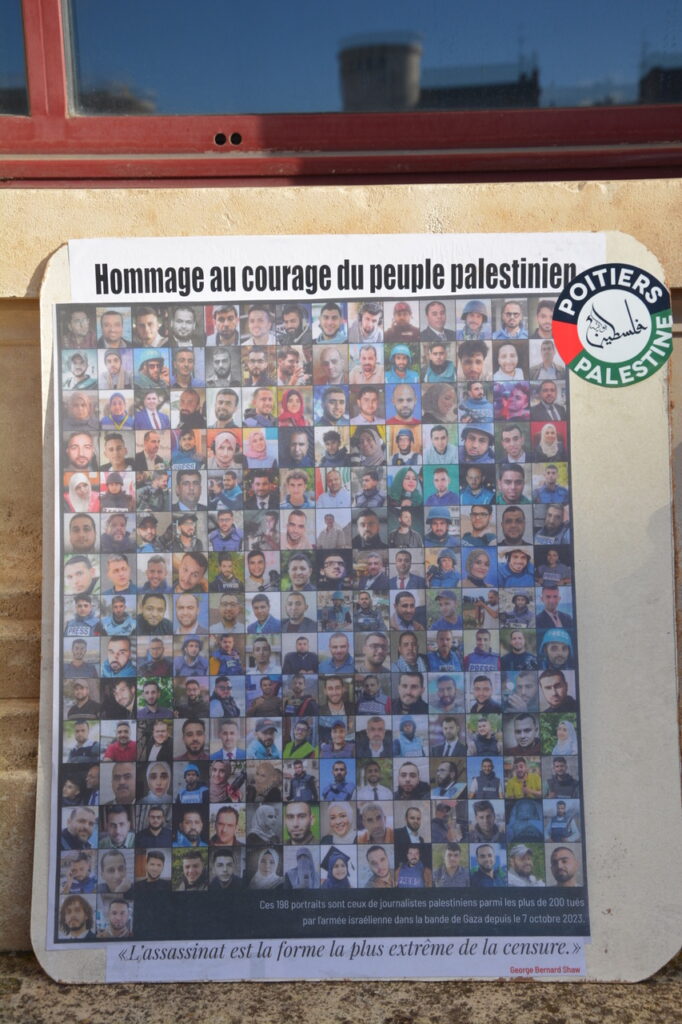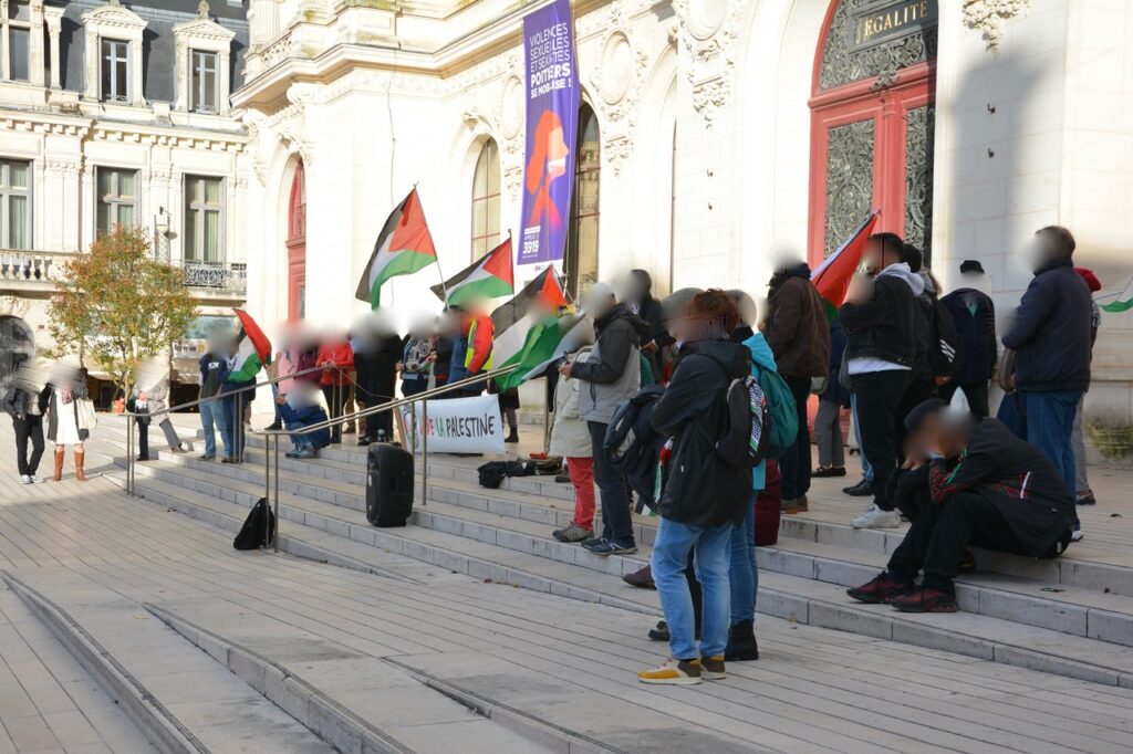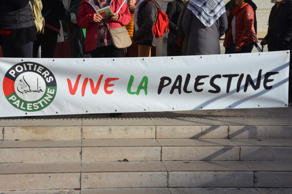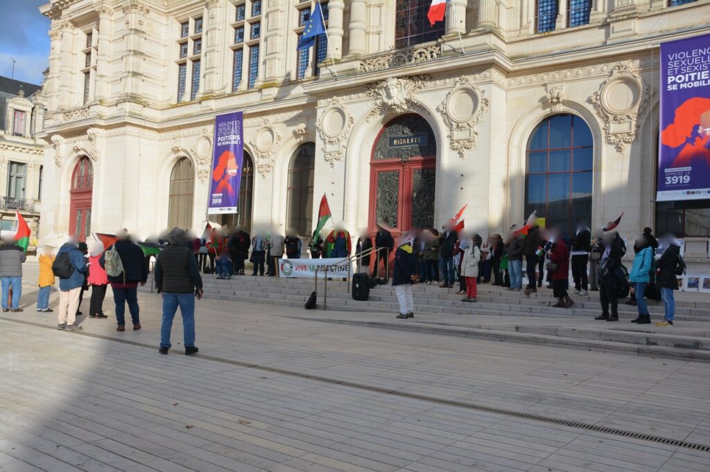 Le nouveau rassemblement organisé samedi 8 novembre devant la mairie de Poitiers qui a réuni près de 90 personnes a voulu rendre hommage au courage du peuple palestinien qui continue de résister et de lutter pour ses droits, face à la barbarie israélienne.