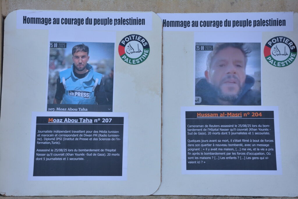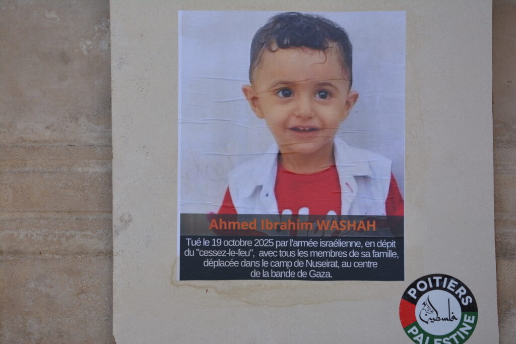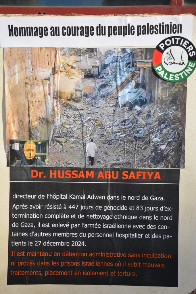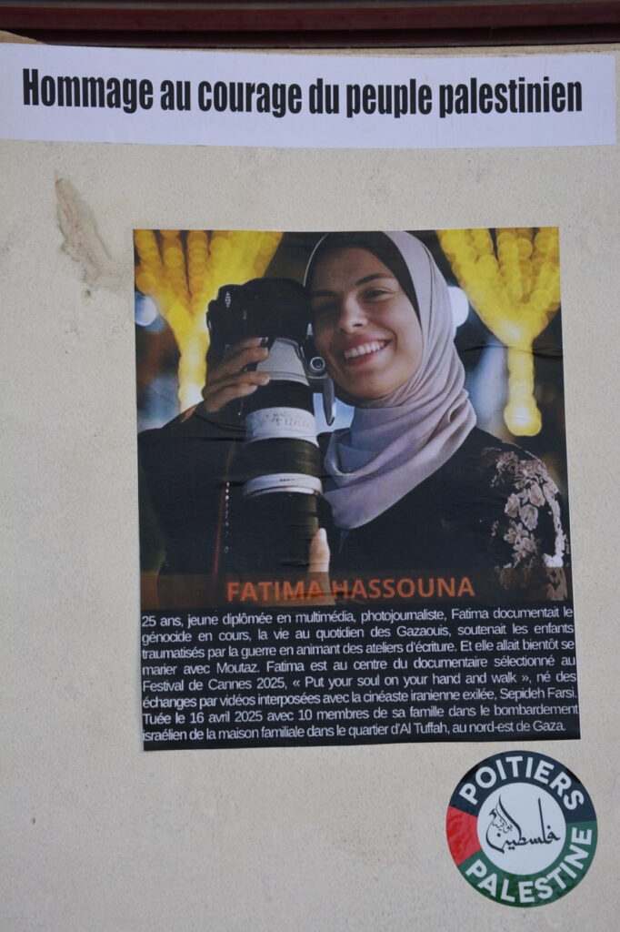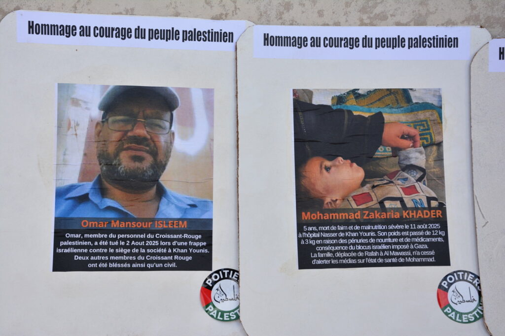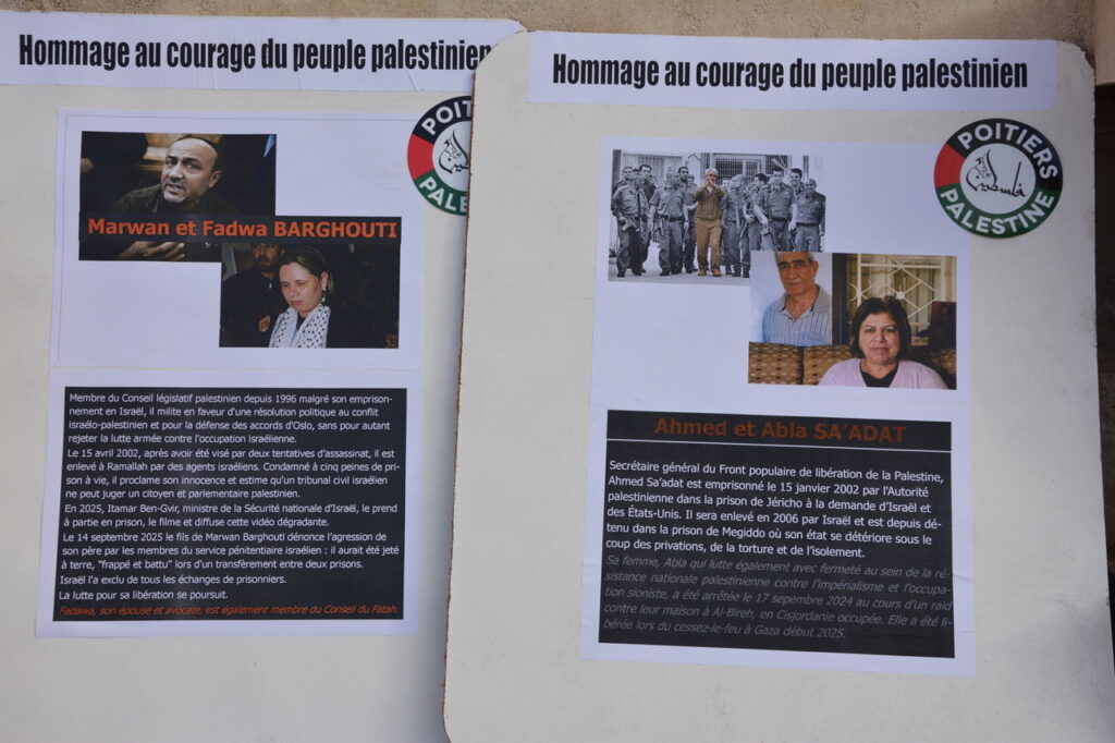Le nouveau rassemblement organisé samedi 8 novembre devant la mairie de Poitiers qui a réuni près de 90 personnes a voulu rendre hommage au courage du peuple palestinien qui continue de résister et de lutter pour ses droits, face à la barbarie israélienne.