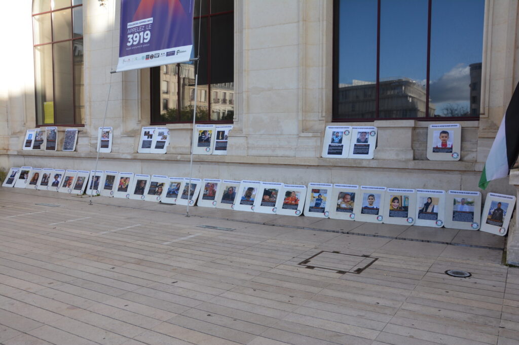 Une série de photos disposées tout au long de la façade de l’hôtel de ville (ci-dessous) voulaient mettre un visage sur les dizaines de milliers de femmes, enfants, hommes, journalistes, secouristes,… tué.es, blessé.es ou disparu.es dans les bombardements israéliens depuis plus de deux ans. Et même encore aujourd’hui malgré le « cessez-le-feu » décrété il n’y a que deux semaines : des attaques qui continuent de provoquer morts, blessés et destructions. Le tout dans une large indifférence de la majorité des médias…