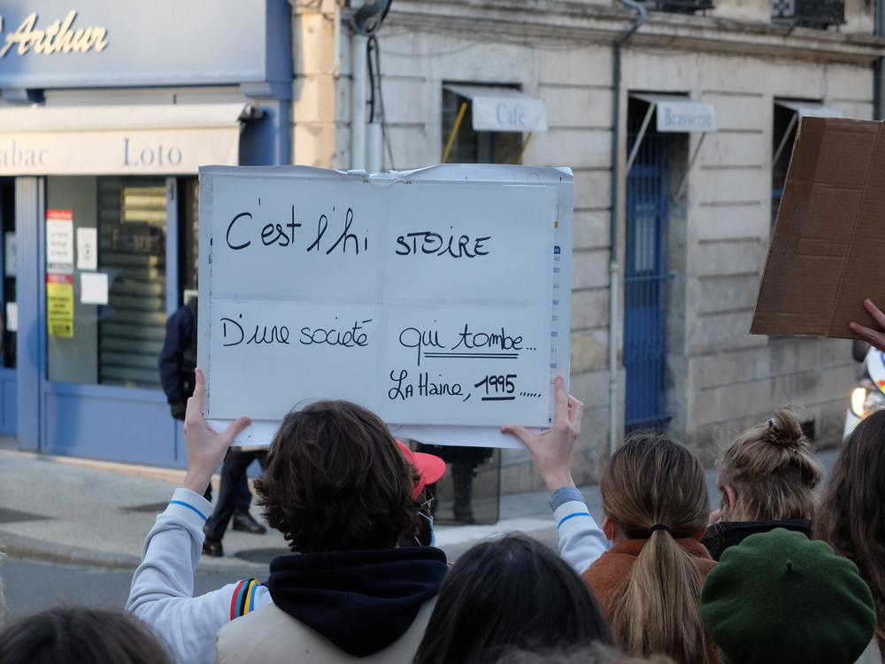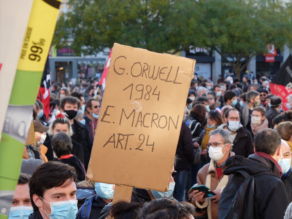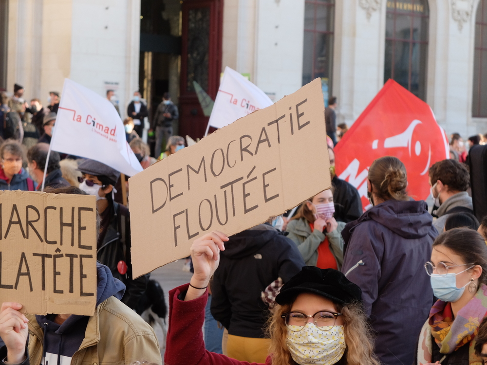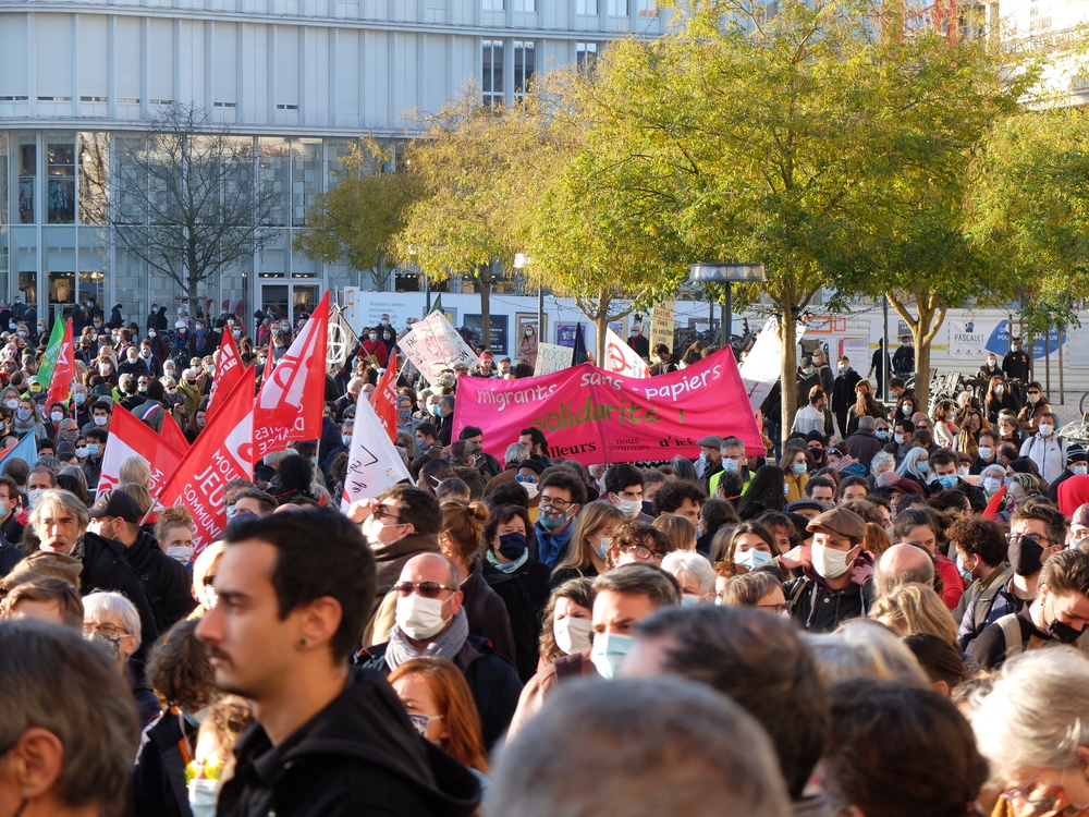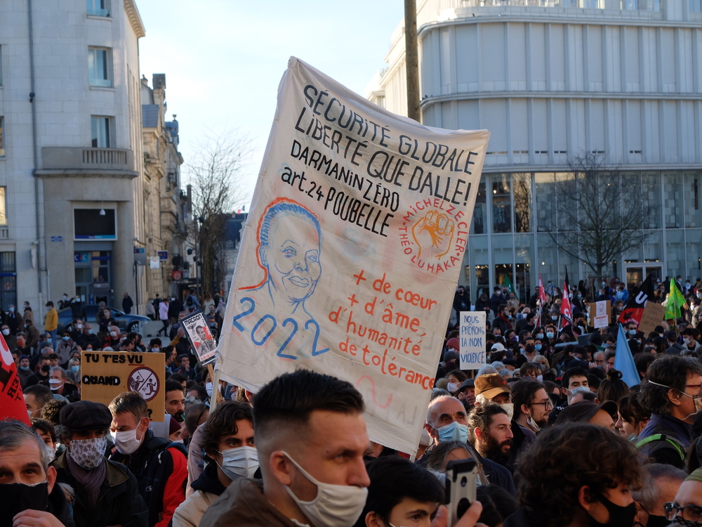 Au jeu des pronostics, on est sûr de gagner : beaucoup de monde à Poitiers aujourd’hui sur une place de la mairie envahie de personnes bien conscientes d’être là pour dire leur défiance, leur colère, leur émotion, une volonté commune d’arrêter cette insupportable dérive autoritaire du pouvoir en place. Alors combien ce samedi 28 novembre ? On annonce 2 000, sûrement plus mais à coup sûr bien au delà de la semaine passée. Il faut dire que l’on a été servi cette semaine avec une répression féroce de migrants à Paris suivie d’images d’une violence insupportable contre un producteur de musique… avec les conséquences que l’on connaît. Triste litanie de l’aveuglement de ce pouvoir et d’autres avant lui : loi travail, gilets jaunes, retraites, personnels soignants, avocats,… la liste ne fait que s’allonger.