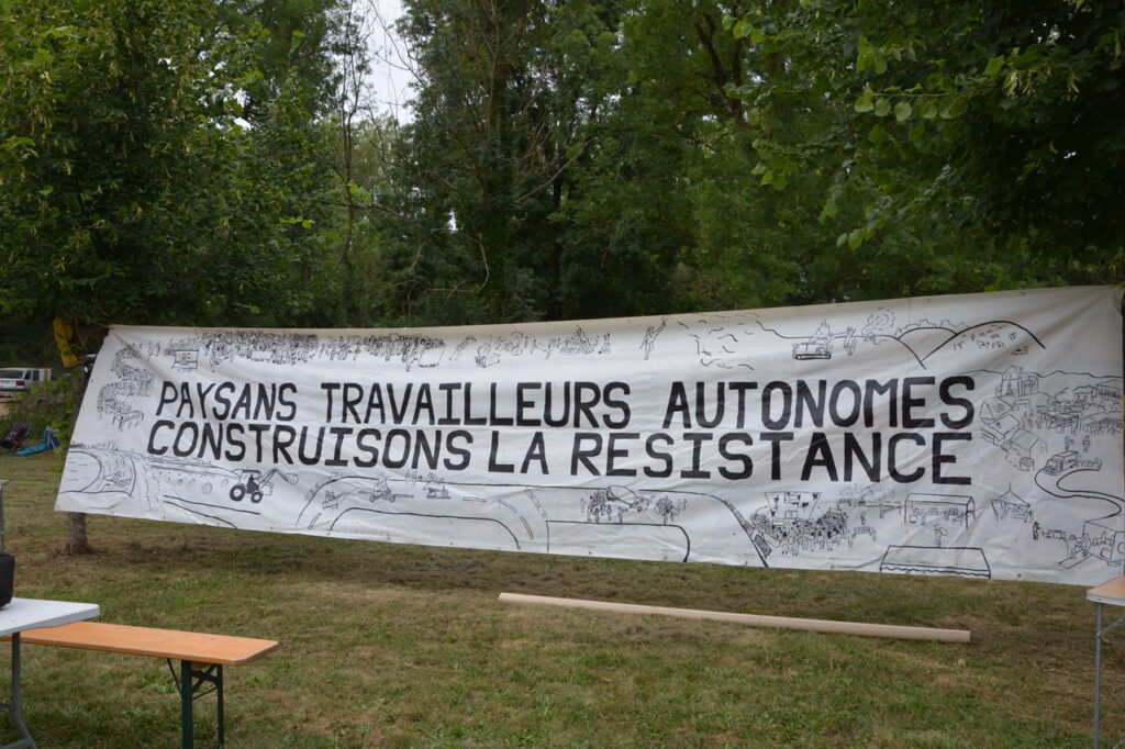 Le repas préparé par la cantine de lutte « Mange ta langue » fut un autre temps fort de partage et de discussion entre près d’une centaine de personnes présentes tout au long de la soirée. Projection enfin du film documentaire « Paysan et Rebelle » sur la vie de Bernard Lambert, « père spirituel » du syndicalisme paysan des « travailleurs-paysans » dont la Confédération Paysanne est le continuateur direct (bande-annonce sur le site d’Iskra, société indépendante, productrice du documentaire en 2002) : http://www.iskra.fr/PAYSAN-ET-REBELLE-un-portrait-de-Bernard-Lambert)