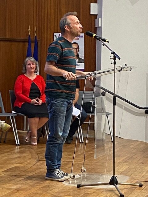 Stéphane Patrier, suppléant de Lisa Belluco, a évoqué ses engagements citoyens et écologiques à partir d’expériences locales autour de Poitiers