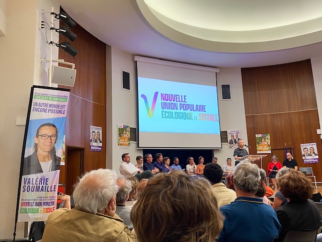 Plusieurs invité-es ont pris la parole pour dire les raisons qui les amènent à soutenir la NUPES. Chacun-e a illustré un élément du programme.