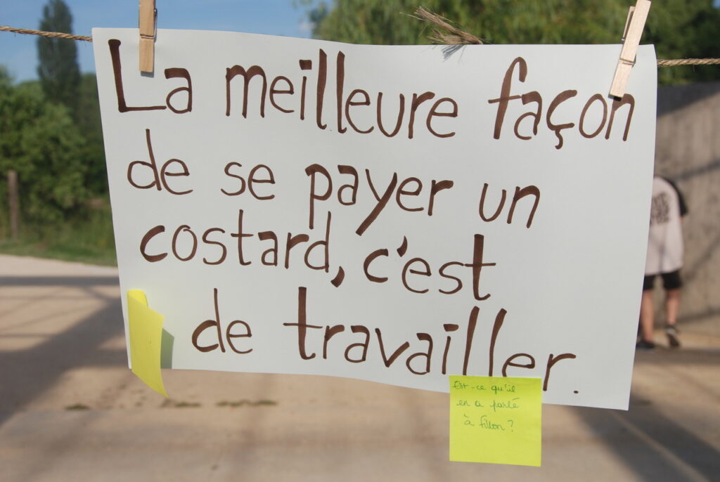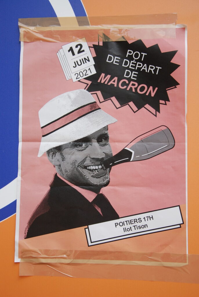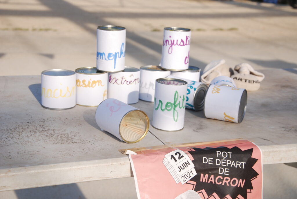 Ça se passait à l’ilot Tison : un an avant le départ de Macron, ça valait bien un pot. Un pot souhaité, attendu par la soixantaine de personnes présentes pour l’occasion. Pas tant pour boire un coup (mais ça aide aussi) que pour signifier au locataire de l’Elysée, qu’il n’était que locataire et que le bail allait s’arrêter en 2022.