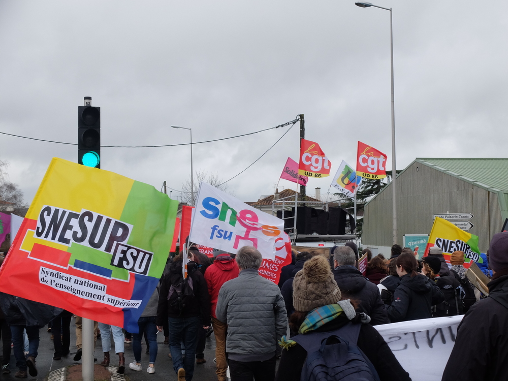 Ce sont aux alentours de 500 personnes qui ont défilé contre le LPPR (loi de programmation pluriannuelle de la recherche) et la réforme des retraites depuis la « fac morte » sur le campus jusqu’à la préfecture. Les fortes bourrasques de vent et la pluie n’ont pas empêché une belle énergie impulsée par la jeunesse de nombre de manifestant-es.