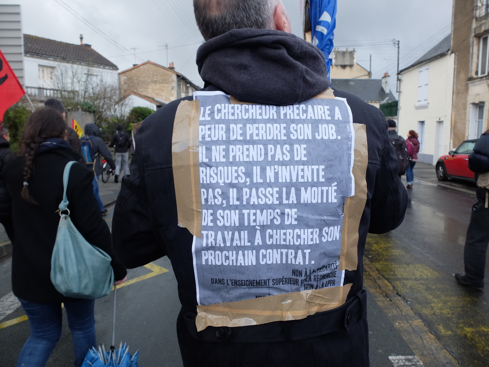 Derrière cette réforme de la LPPR on retrouve bien sûr la casse des statuts des titulaires, la recherche continue… de financement (il faut se vendre auprès des entreprises !) et l’extension du domaine de la précarité