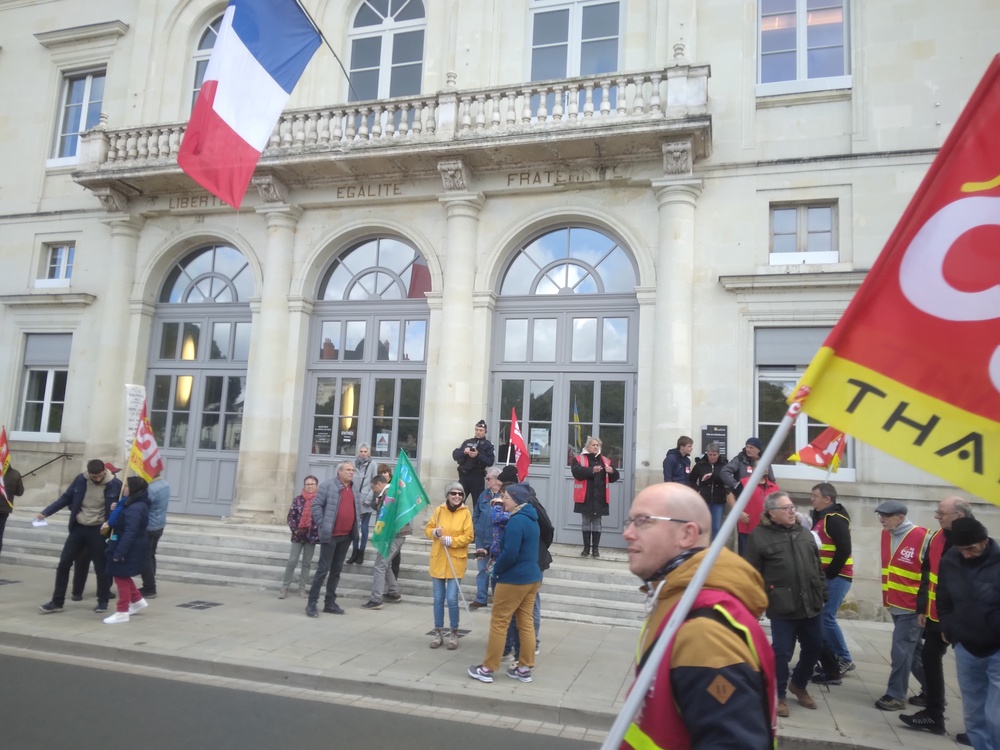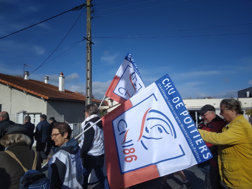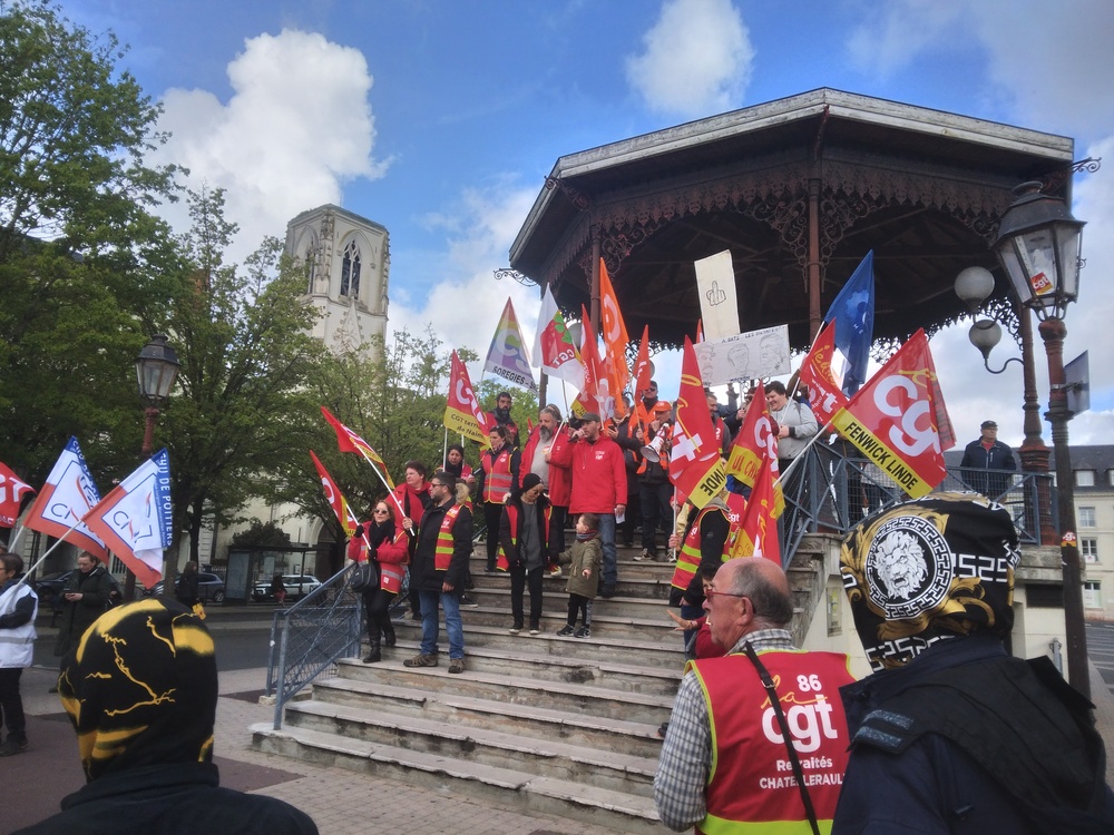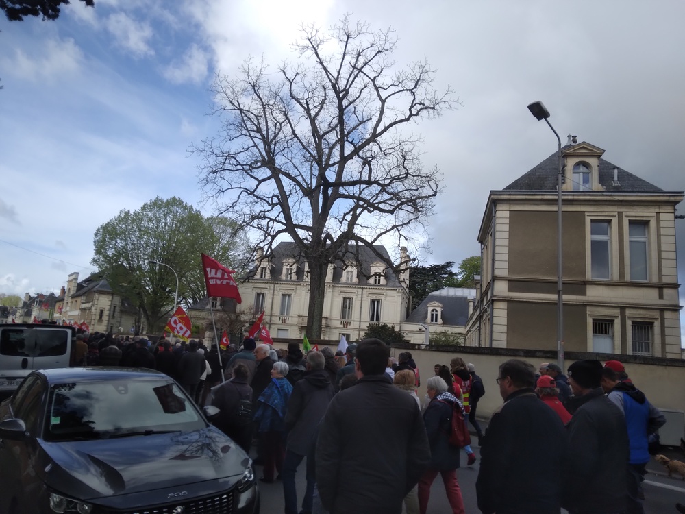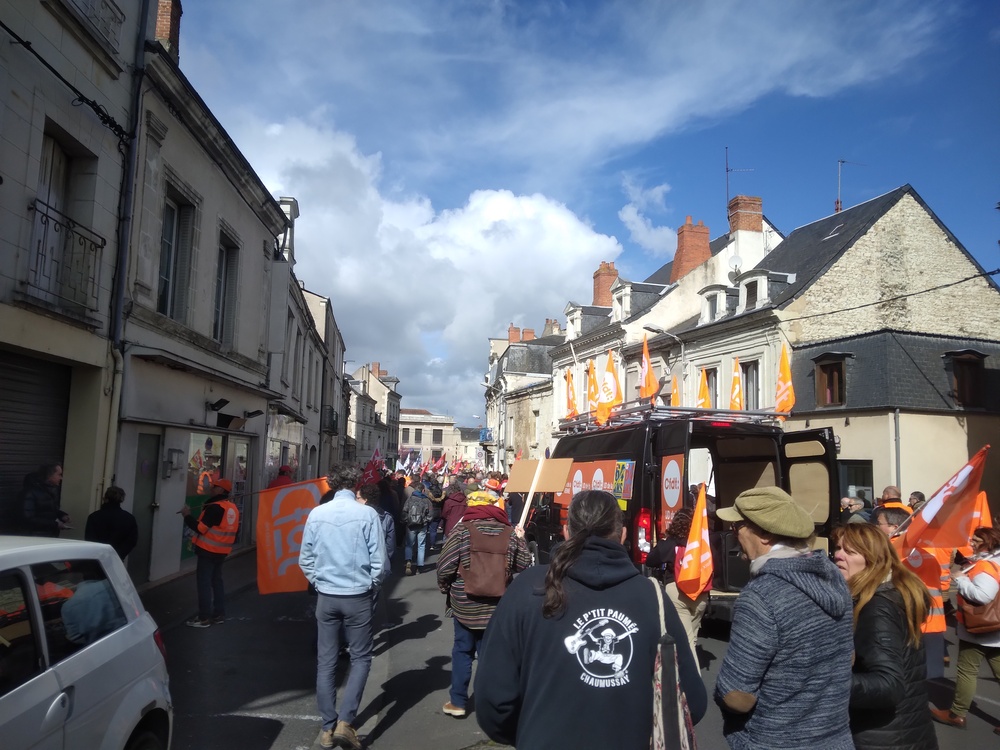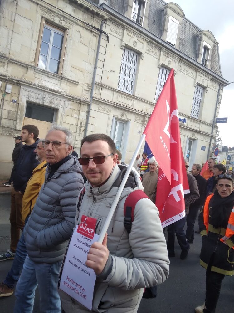 Le départ de la manifestation a eu lieu à 10 heures au rond-point des anciens combattants d’Extrême-Orient (face à l’hypermarché Leclerc). Le cortège d’environ 2 000 personnes s’est ensuite dirigé vers le kiosque à musique en passant sous le pont de chemin de fer, puis à côté de la sous-préfecture, enfin à côté de la fête foraine sur le boulevard Blossac. C’est du haut des marches du kiosque à musique que les prises de parole ont eu lieu, marquées par un soutien exprimé à la Ligue des Droits de l’Homme et aux salarié.es du CCAS.