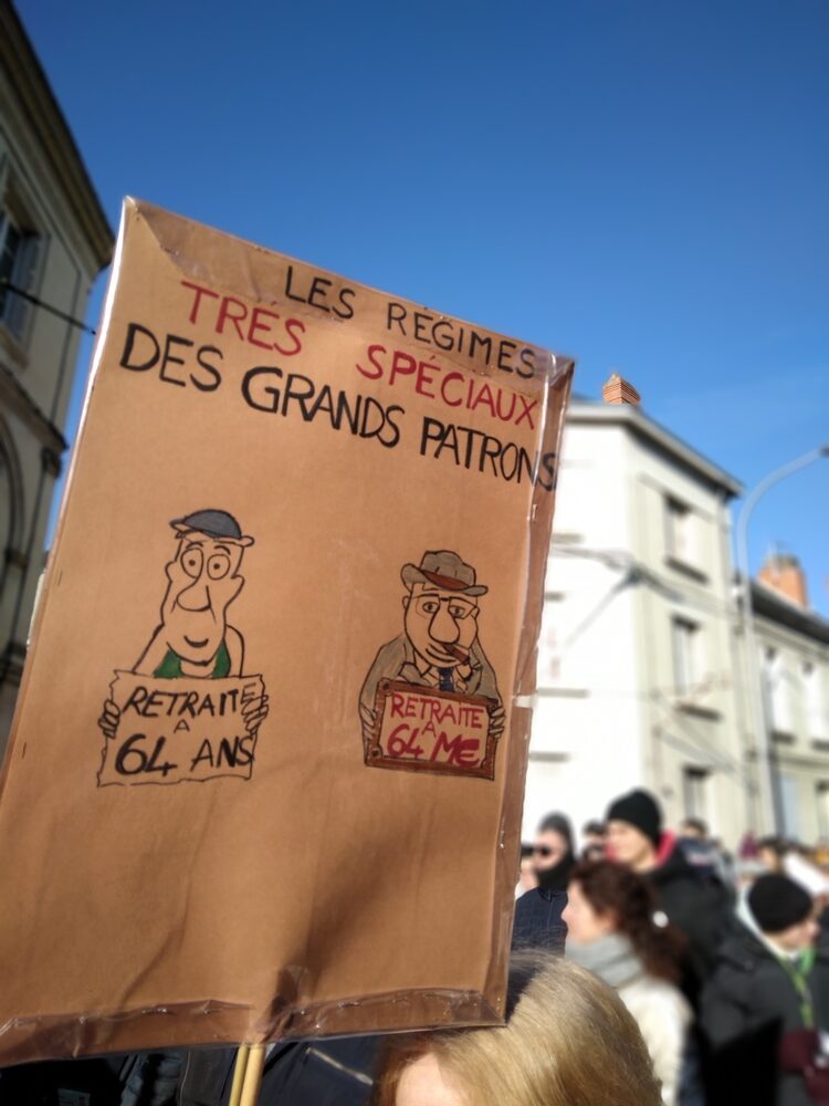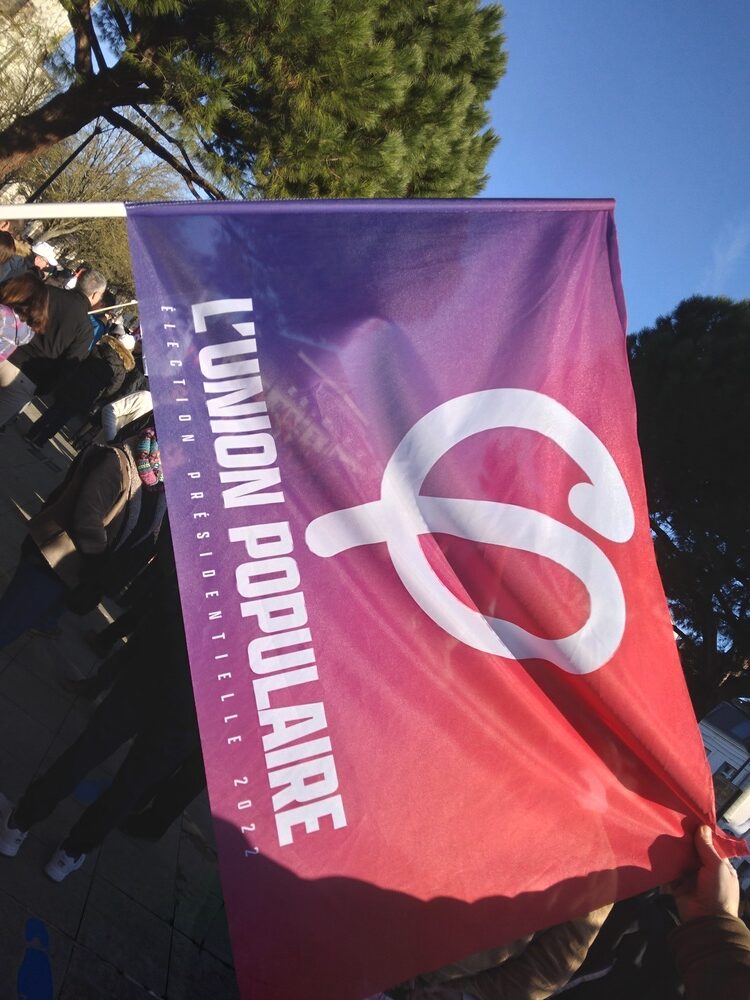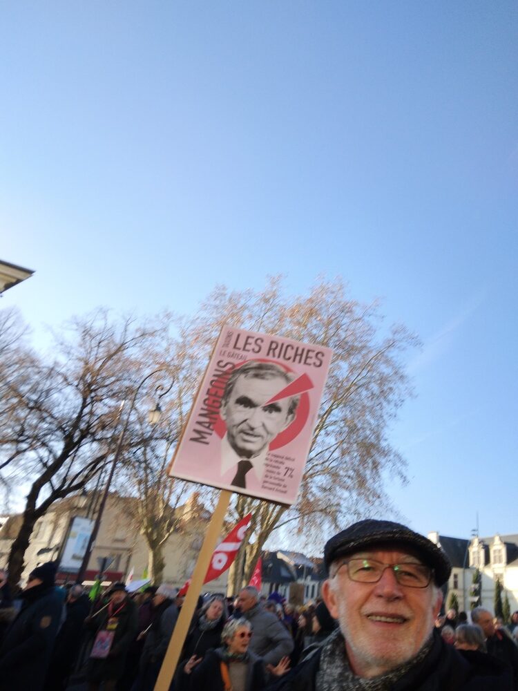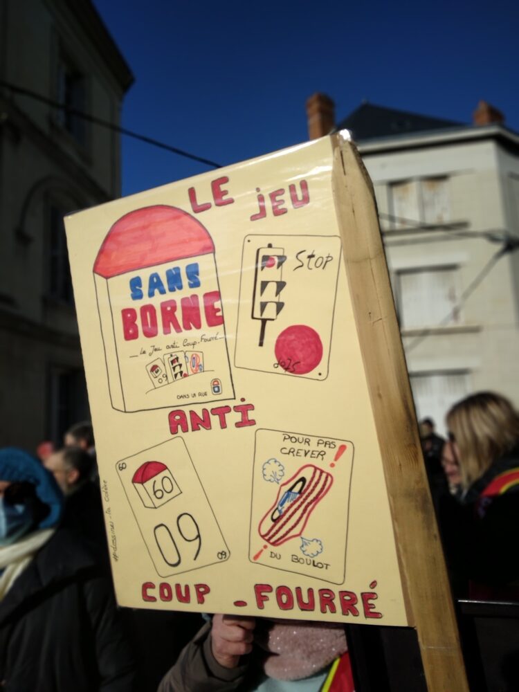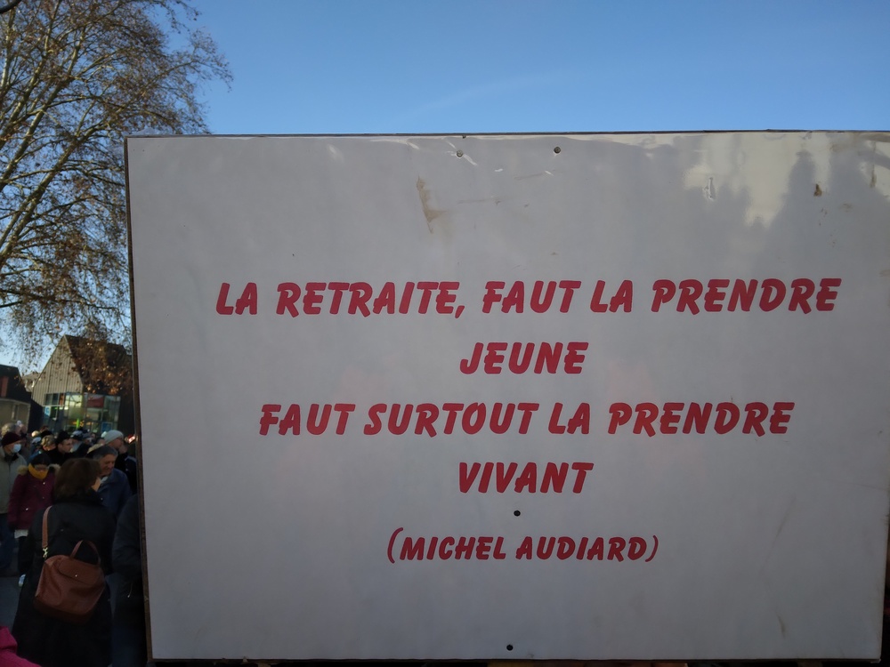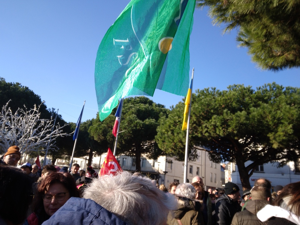 Quelques pancartes et drapeaux aperçus avant le départ :