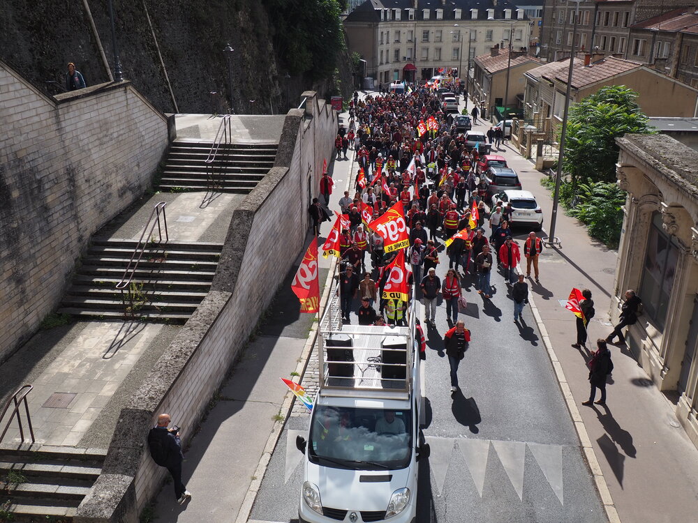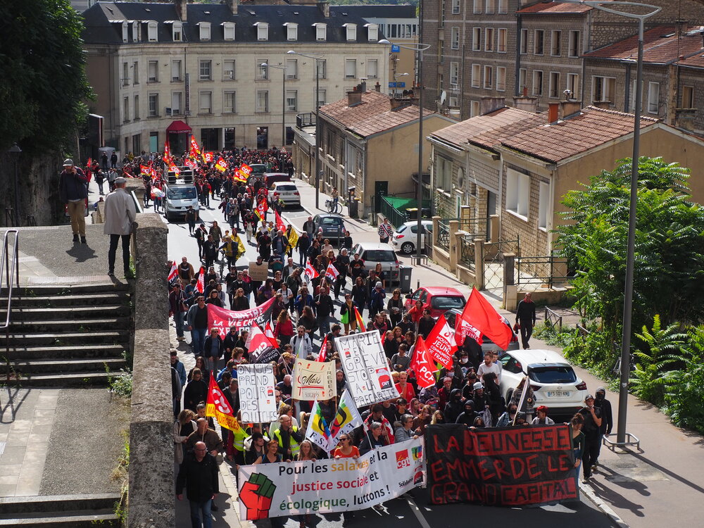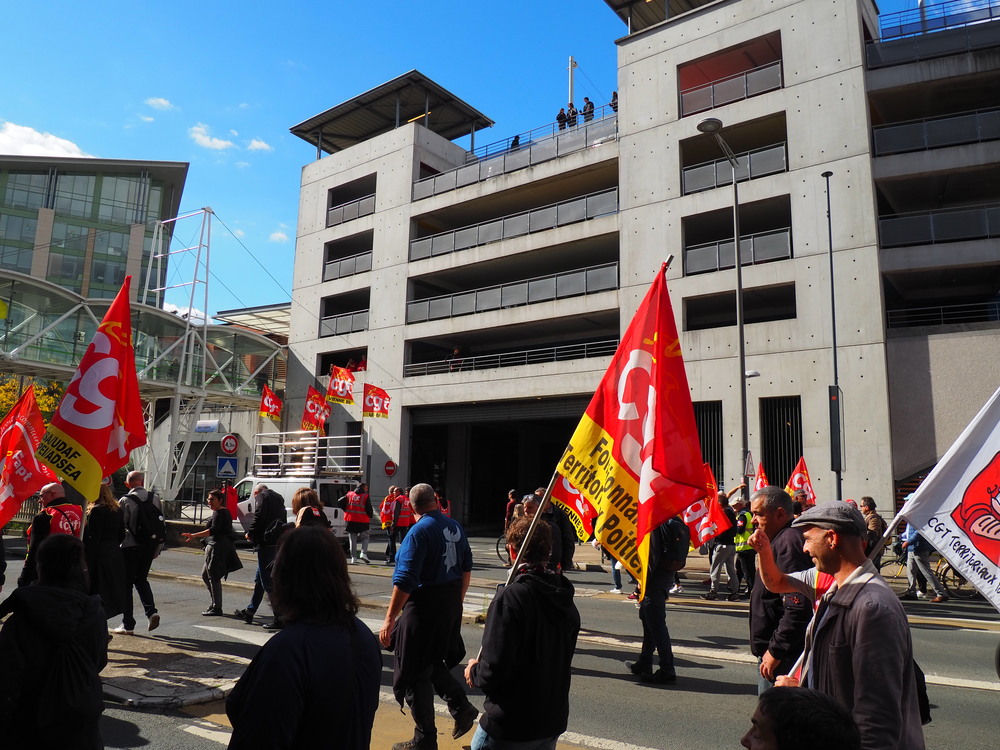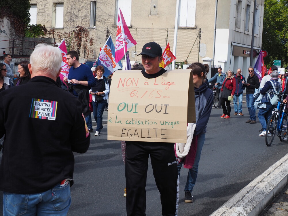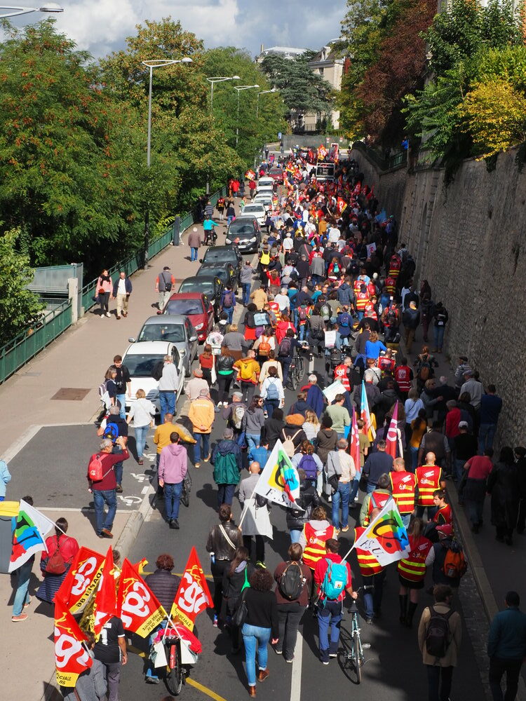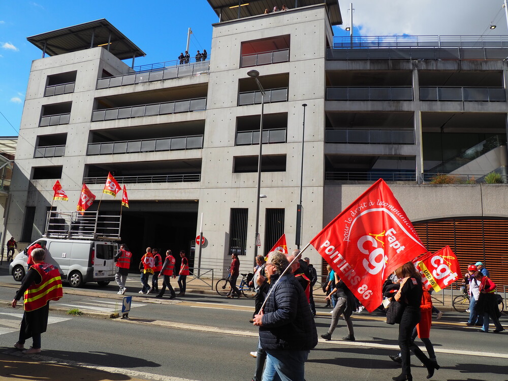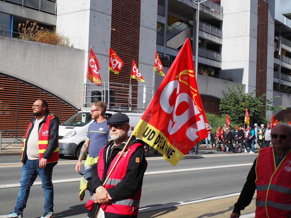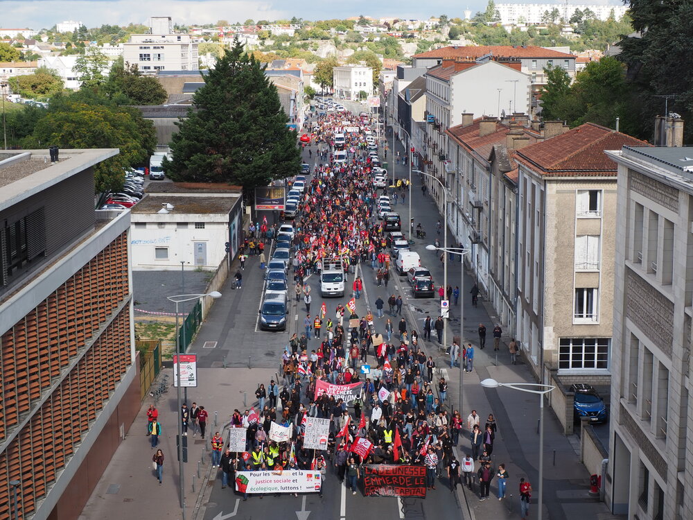 À l’occasion de la grève interprofessionnelle. 1 500 participant-es de la tour, Porte de Paris en passant par la gare, la rue Boncenne, rue de la Marne et arrivée à la Préfecture.