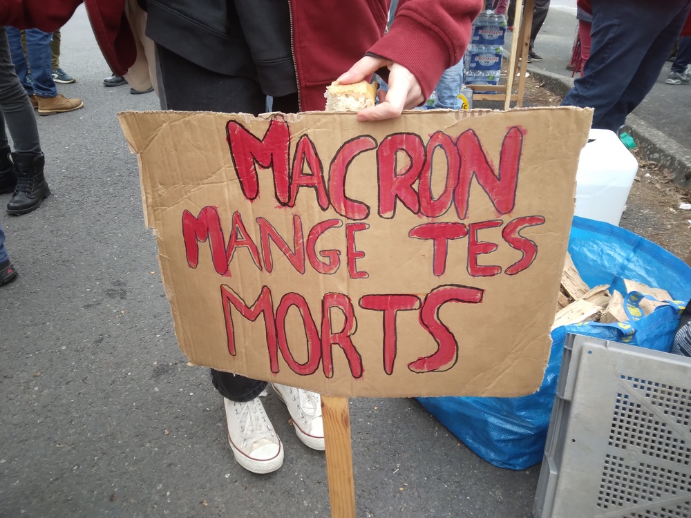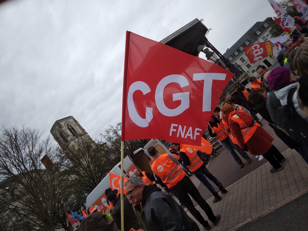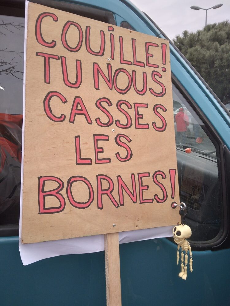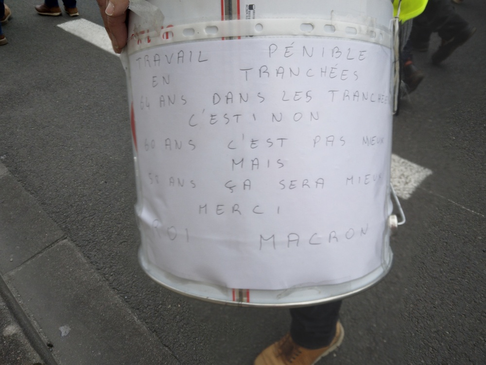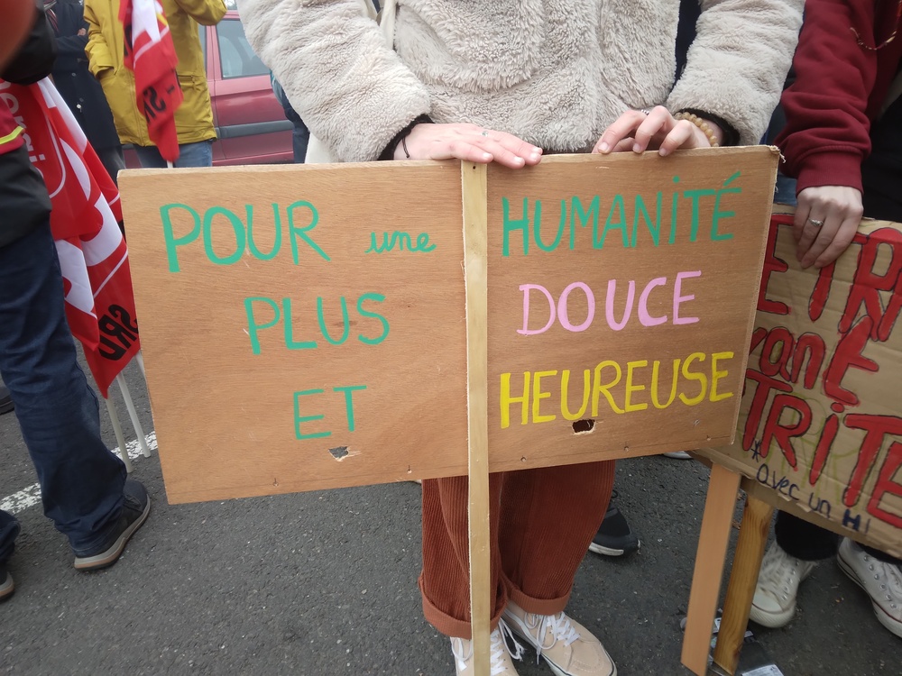 Quelques pancartes et drapeaux repérés le long du cortège (du kiosque à musique jusqu’au rond-point de la zone-nord.)