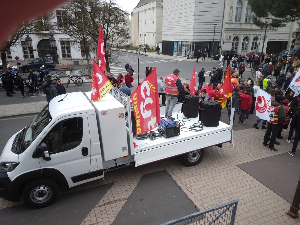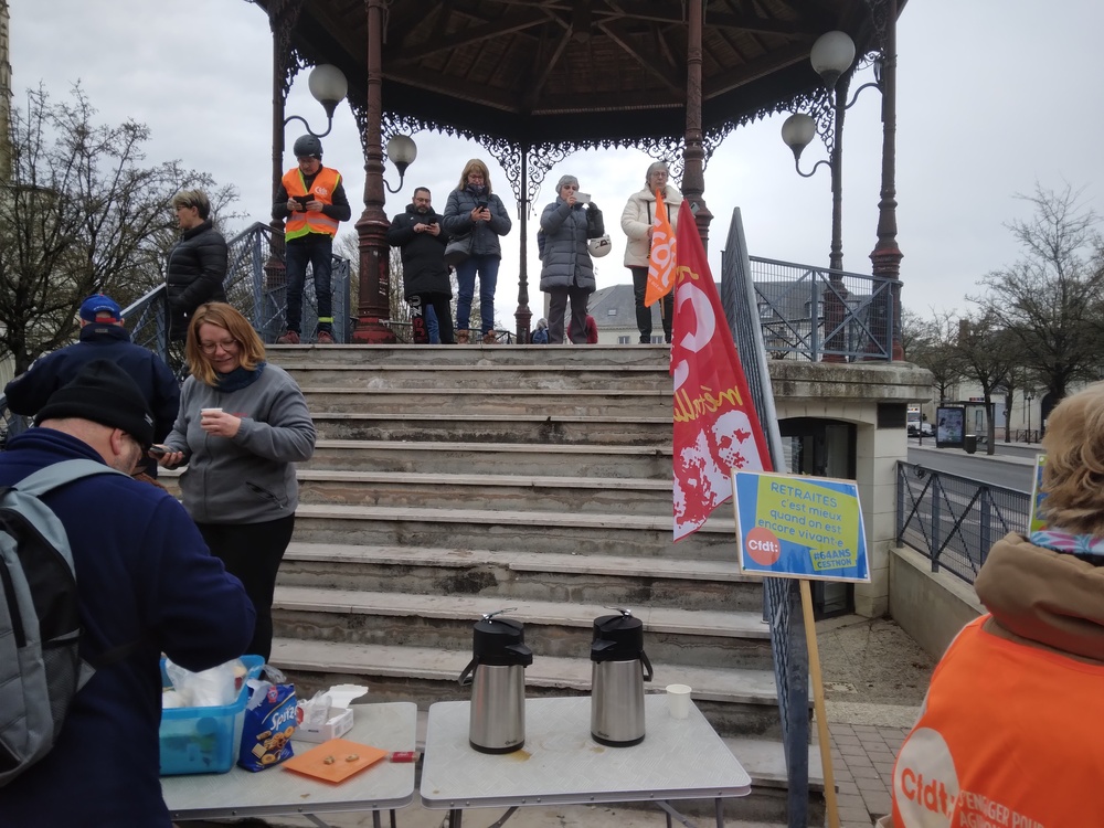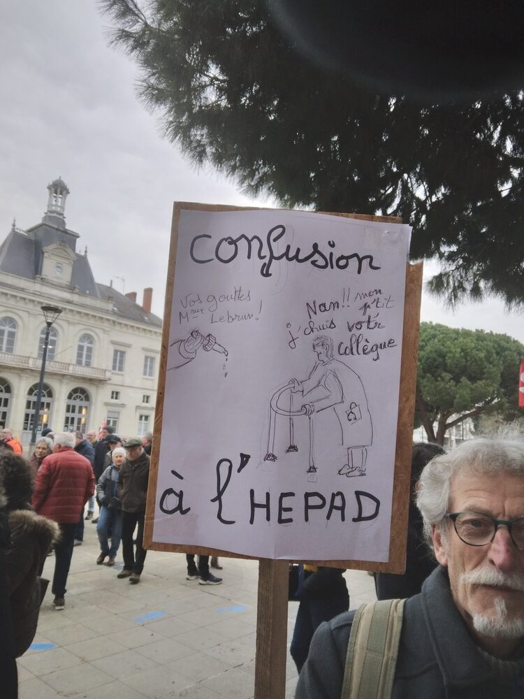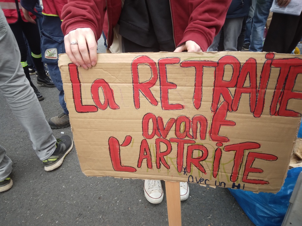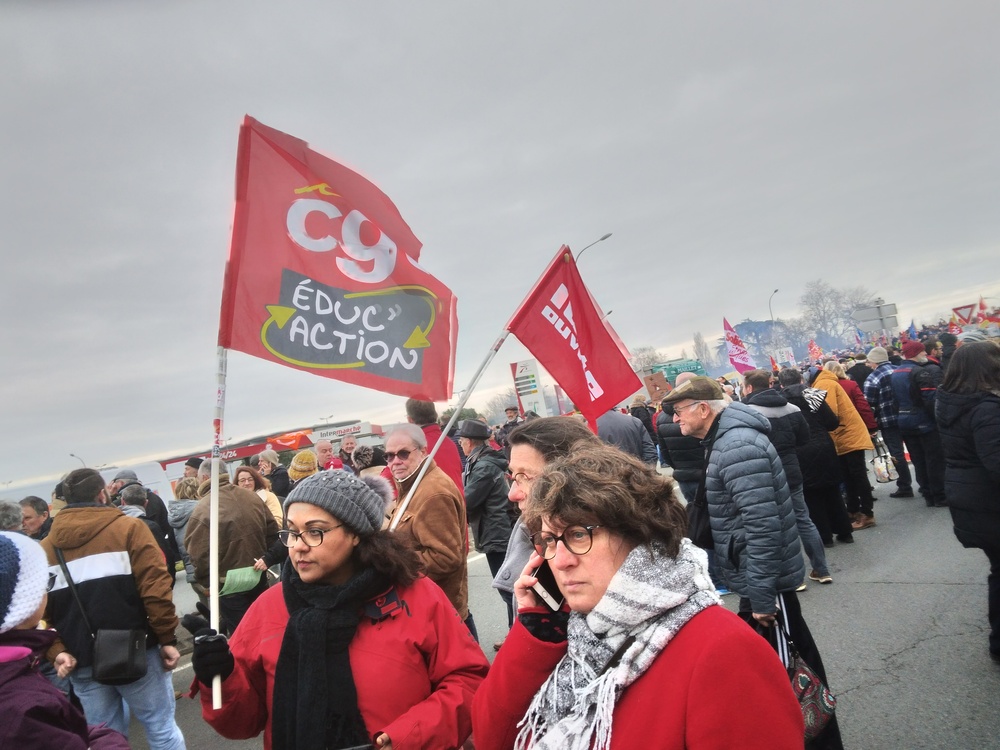 Quelques pancartes et drapeaux repérés le long du cortège (du kiosque à musique jusqu’au rond-point de la zone-nord.)