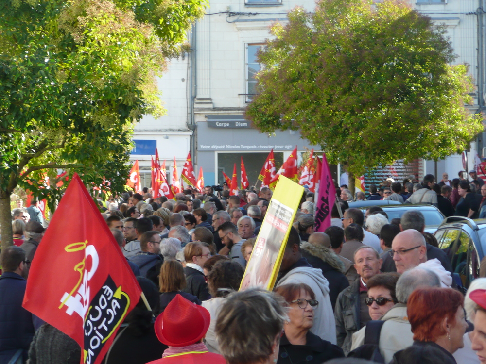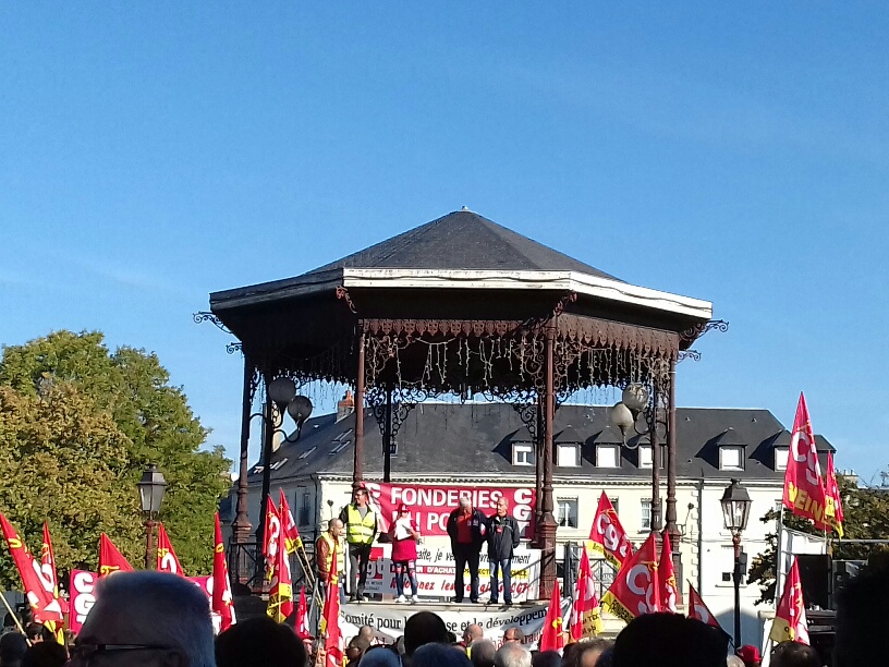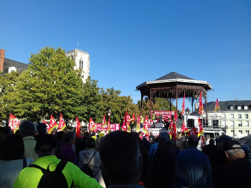 Le 9 octobre 2018, entre 850 (LO) et 1000 (CGT) personnes (900 selon la NR) dans la rue dans un contexte de crise aux Fonderies du Poitou et sur les hôpitaux nord-Vienne. Des membres du conseil municipal d’Ingrandes (Fonderies) étaient présent-es.