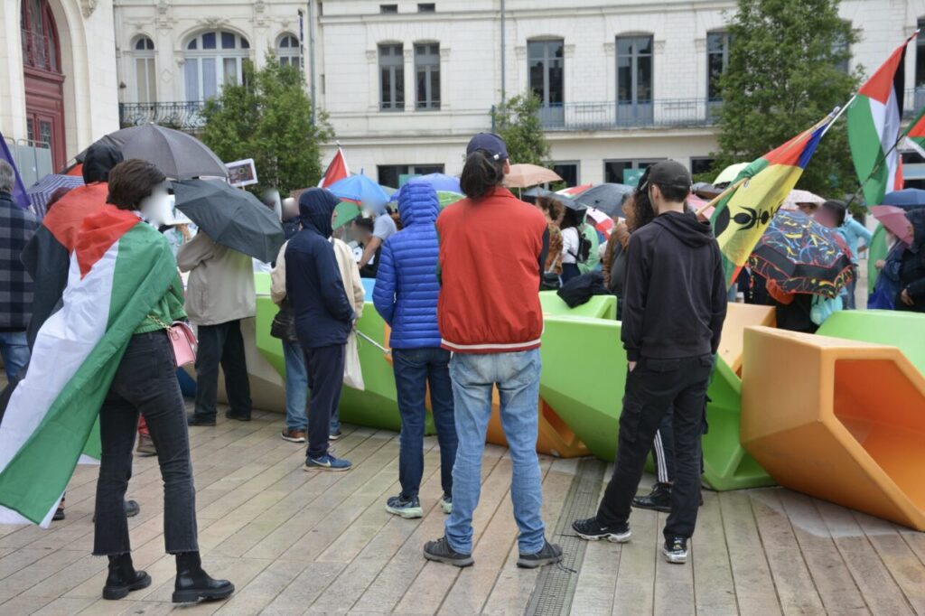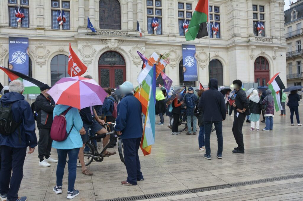 Nouveau samedi de mobilisation à Poitiers ce 8 juin. Avant la manifestation qui a traversé les rues piétonnes, 150 personnes étaient rassemblées pour montrer à nouveau leur soutien à la population palestinienne qui n’en finit pas d’être martyrisée, massacrée par l’armée israélienne aidée en cela par des colons fanatisés en Cisjordanie et à Jérusalem.
