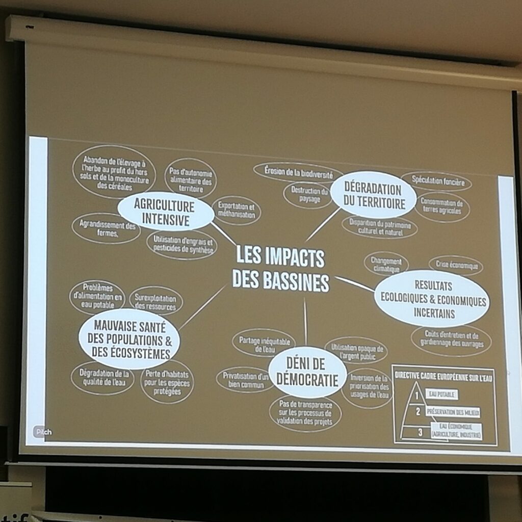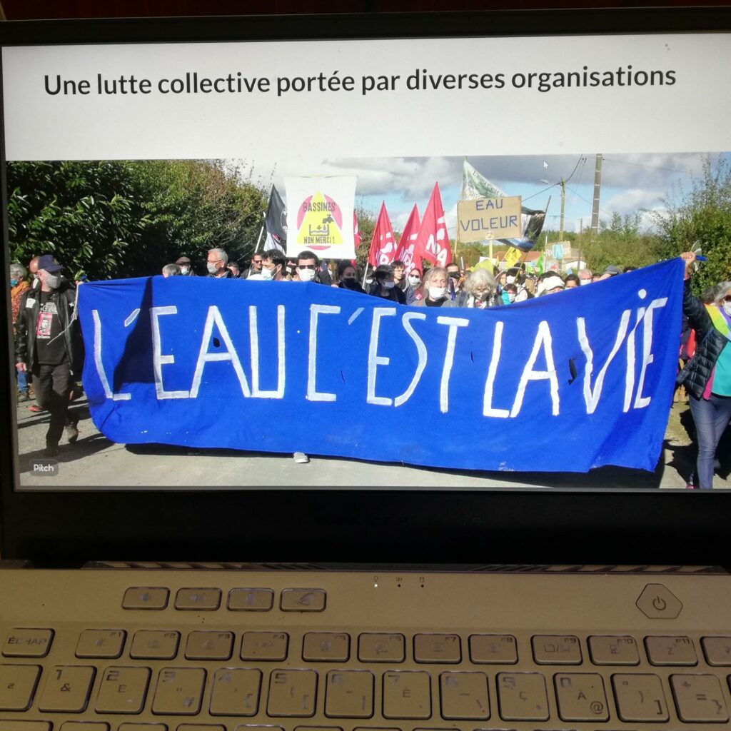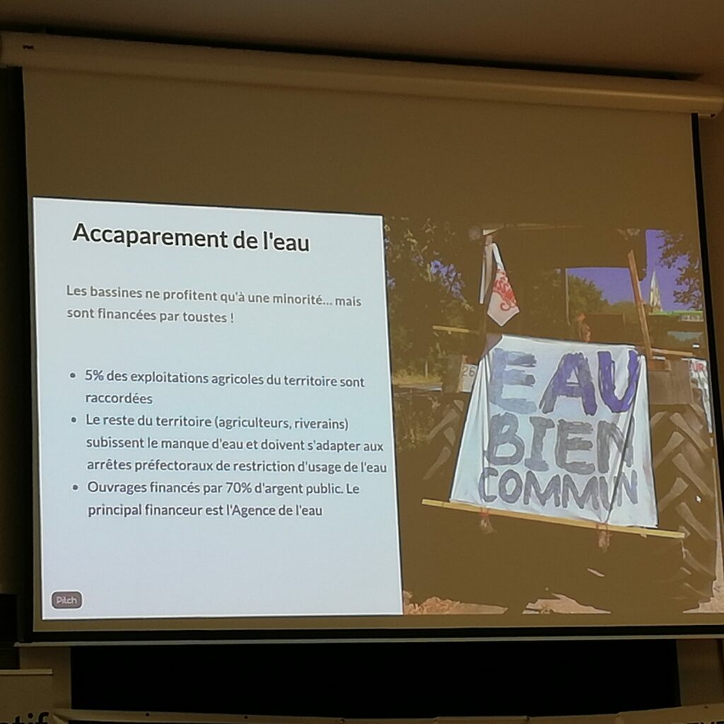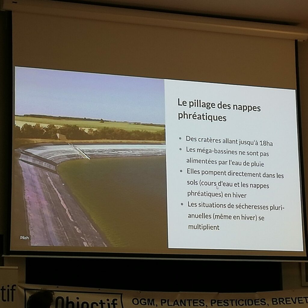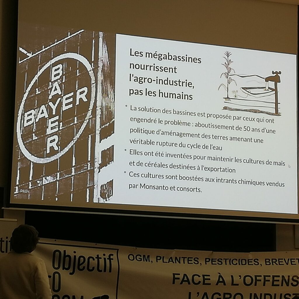 Amandine Pacaud de la Confédération Paysanne des Deux-Sèvres et Agnès Baudrillard de Bassines Non Merci Aume-Couture étaient présentes. Elles ont démontré que nous sommes confrontés aux mêmes logiques d’accaparement des ressources par et pour l’agro-industrie que ce soit pour les semences ou l’accès à l’eau.