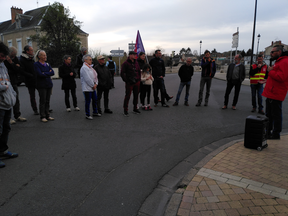 Une trentaine de personnes étaient présentes pour protester contre les excès de violence des forces de l’ordre contre les manifestants venus pacifiquement à cette occasion. Accompagnées de militants syndicalistes et de simples citoyens, plusieurs personnes présentes s’étaient rendues à la manifestation du samedi 25 mars et ont pu témoigner de leur colère par rapport à l’abus de répression exécuté par les gendarmes et policiers et notamment par des militaires en quad qui utilisaient sans retenue des grenades assourdissantes, bombes lacrymogènes et sans qu’il y ait eu de provocation de la part des manifestants.