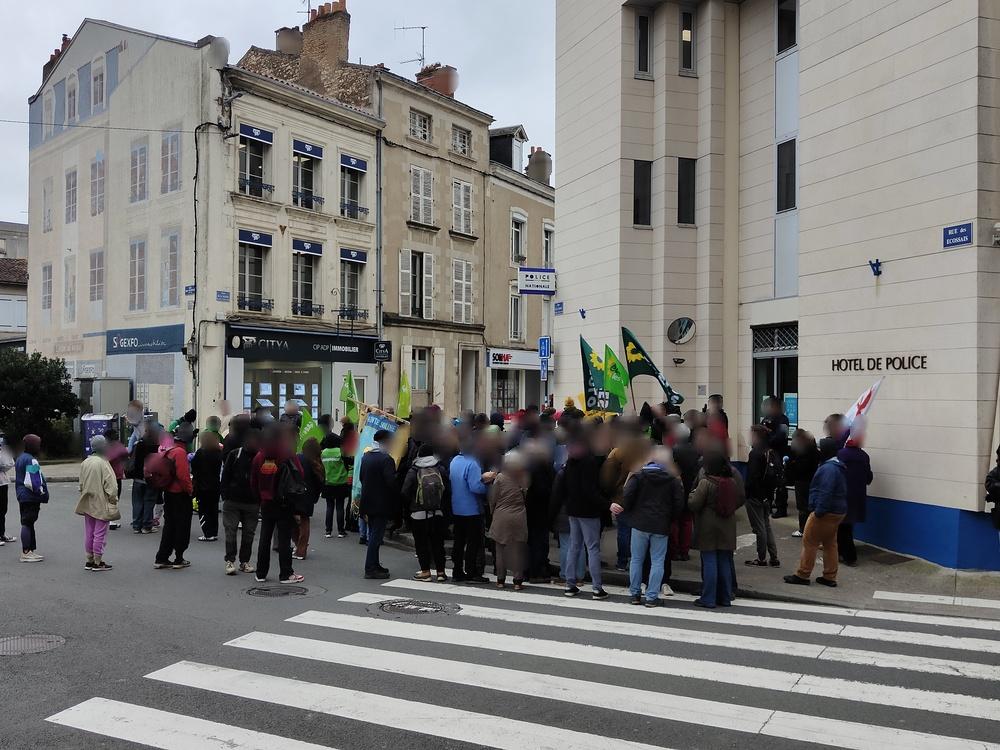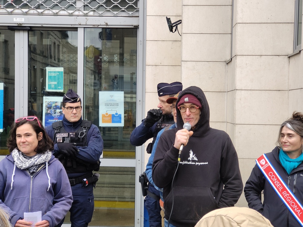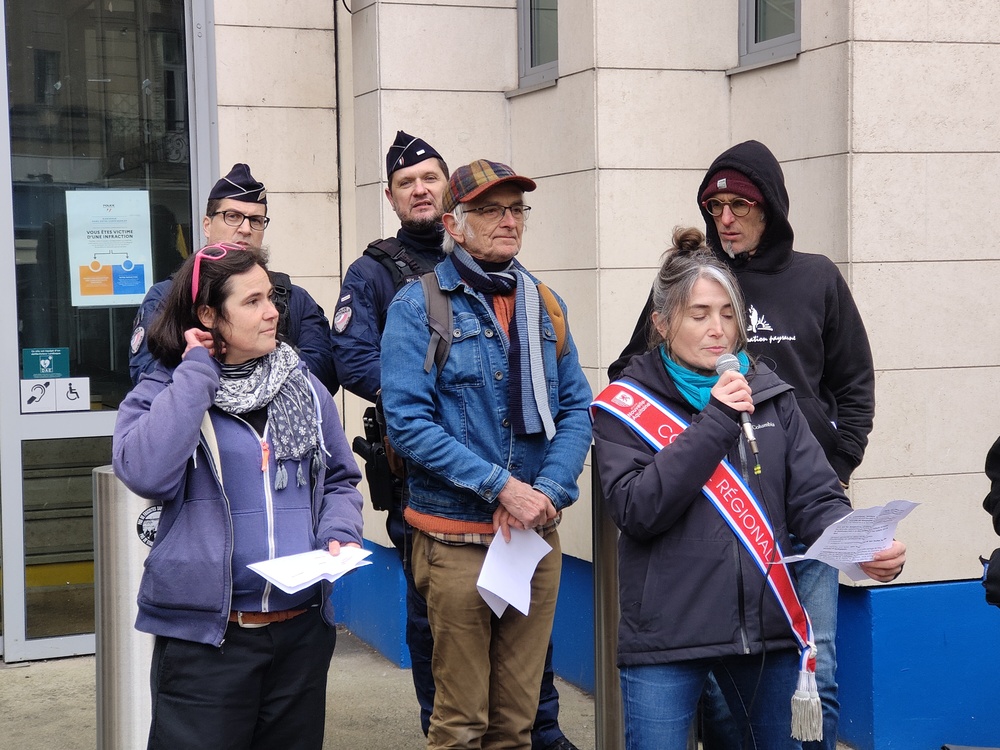 C’était ce jeudi 6 février 2025 à 13h00 devant le commissariat de Poitiers . Près de 150 personnes étaient présentes et ont écouté les prises de parole de la député Écologiste-NFP de la Vienne, Lisa Belluco, d’un porte-parole de BNM86 (communiqué de presse en cliquant ici)et un de la Confédération Paysanne, de l’élue Régionale Christine Graval (à lire ici) et de la propre Anne-Morwenn Pastier, en présence de Julien Le Guet de BNM79.