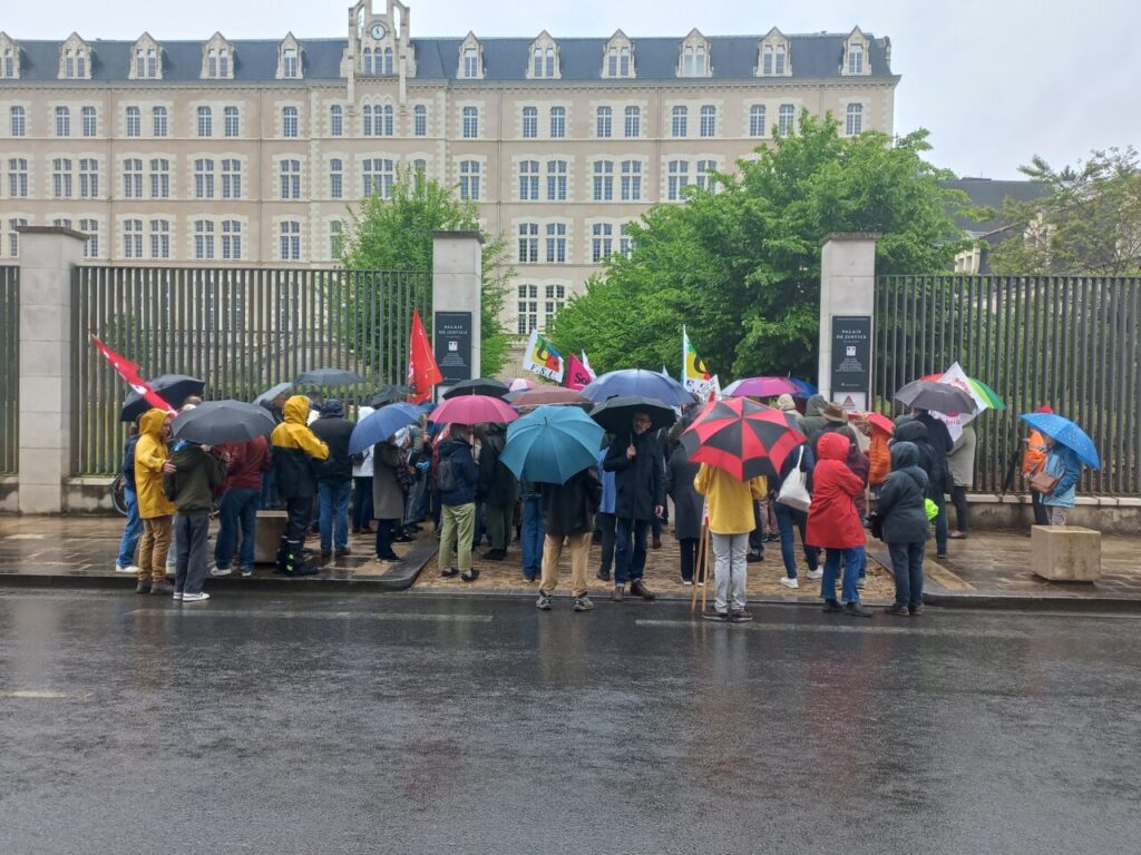 Grave question donc mais petit rassemblement (150 à 200 personnes) ce samedi matin sous la pluie devant le palais de justice de Poitiers : la CGT86, Solidaires86, la FSU86, la LDH de Poitiers, le SAF, (les avocats) la CIMADE86, ATTAC86, le PCF86, le MJC86,… et j’en oublie.
