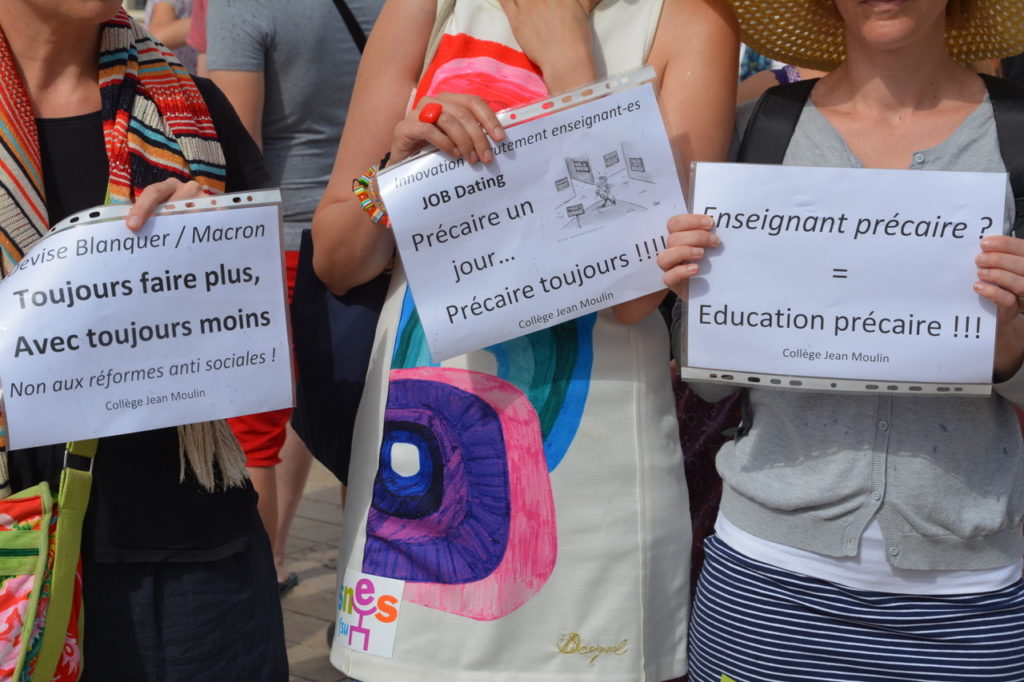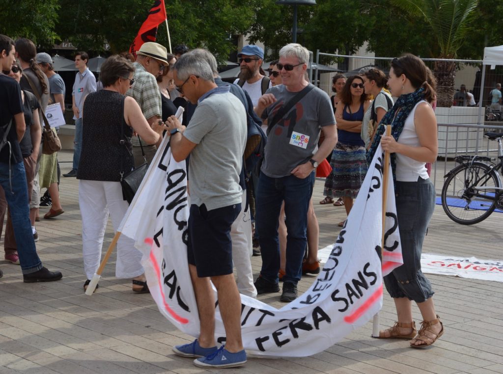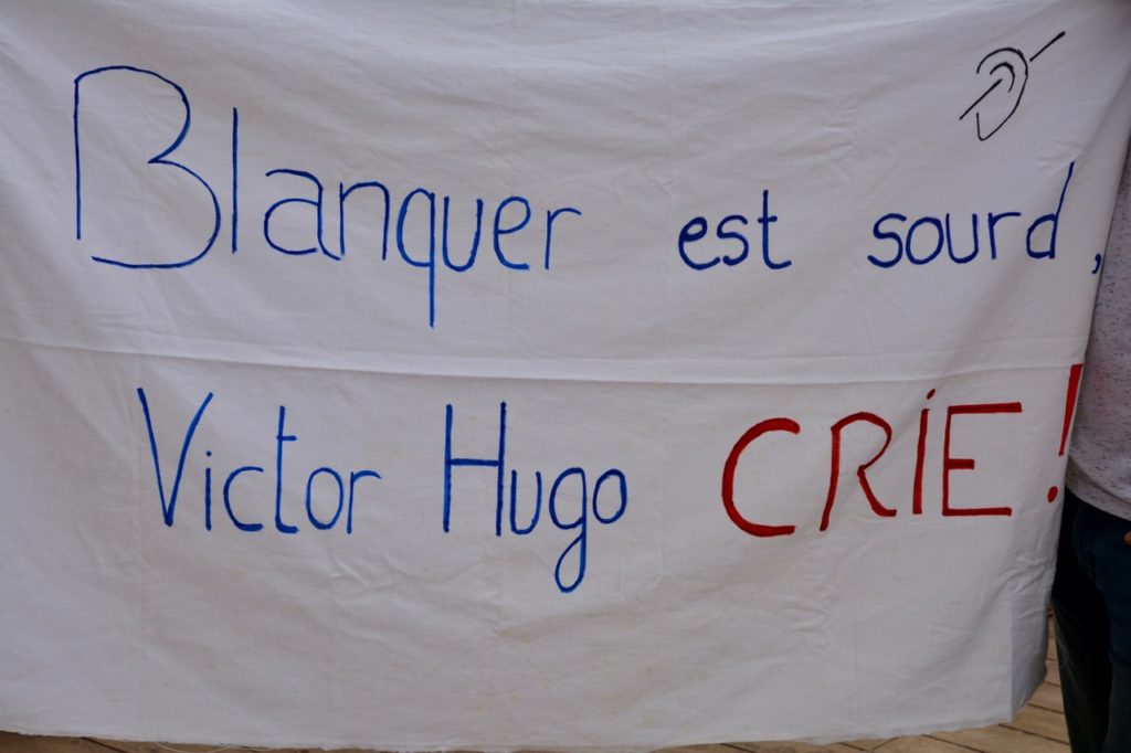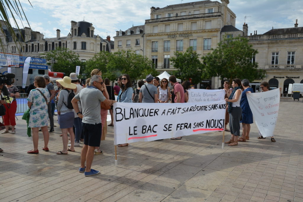 A la suite du mouvement qui touche l’Education Nationale depuis plusieurs mois et dans la continuité des actions menées contre la « loi Blanquer », une soixantaine de personnes se sont retrouvées « place d’Armes » à Poitiers lundi matin, 1er juillet, premier jour du brevet des collèges, nouveau temps fort avec la grève des surveillances.
