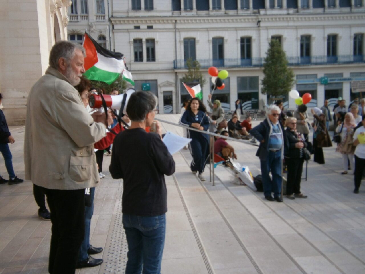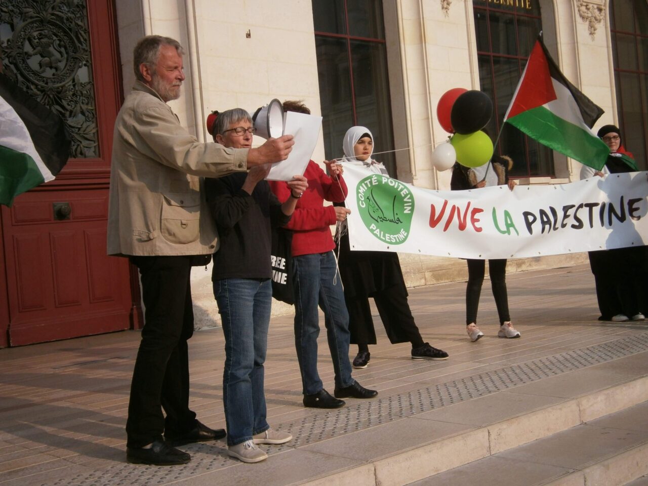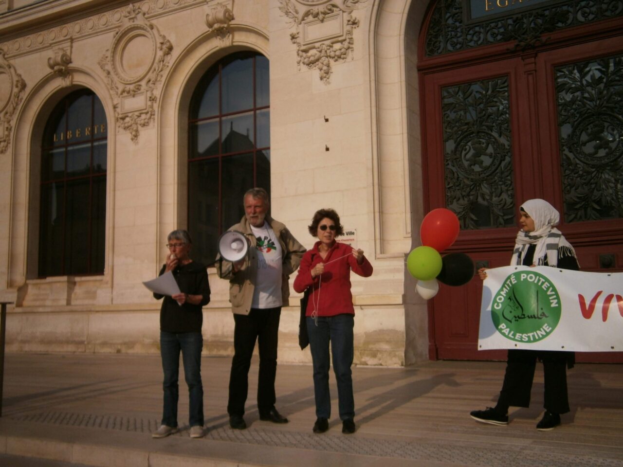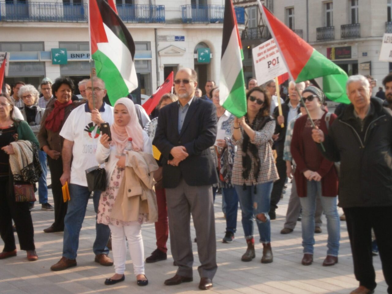 Rassemblement à Poitiers pour le droit au retour des Palestinien-nes ce 15 mai 2018. Il y avait bien trop peu de monde vu l’horreur vécu par les Palestinien-nes et l’inhumanité des propos israélien-nes.