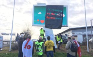 [photos] Recouvrement publicitaire pour mettre le climat au cœur des élections à Poitiers