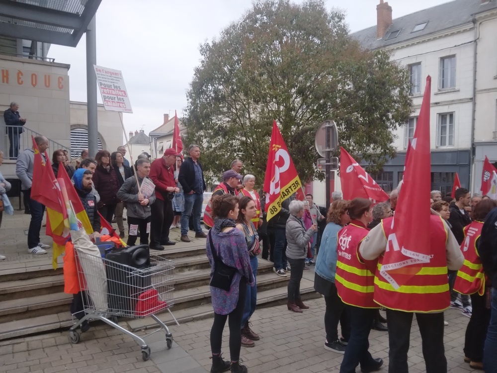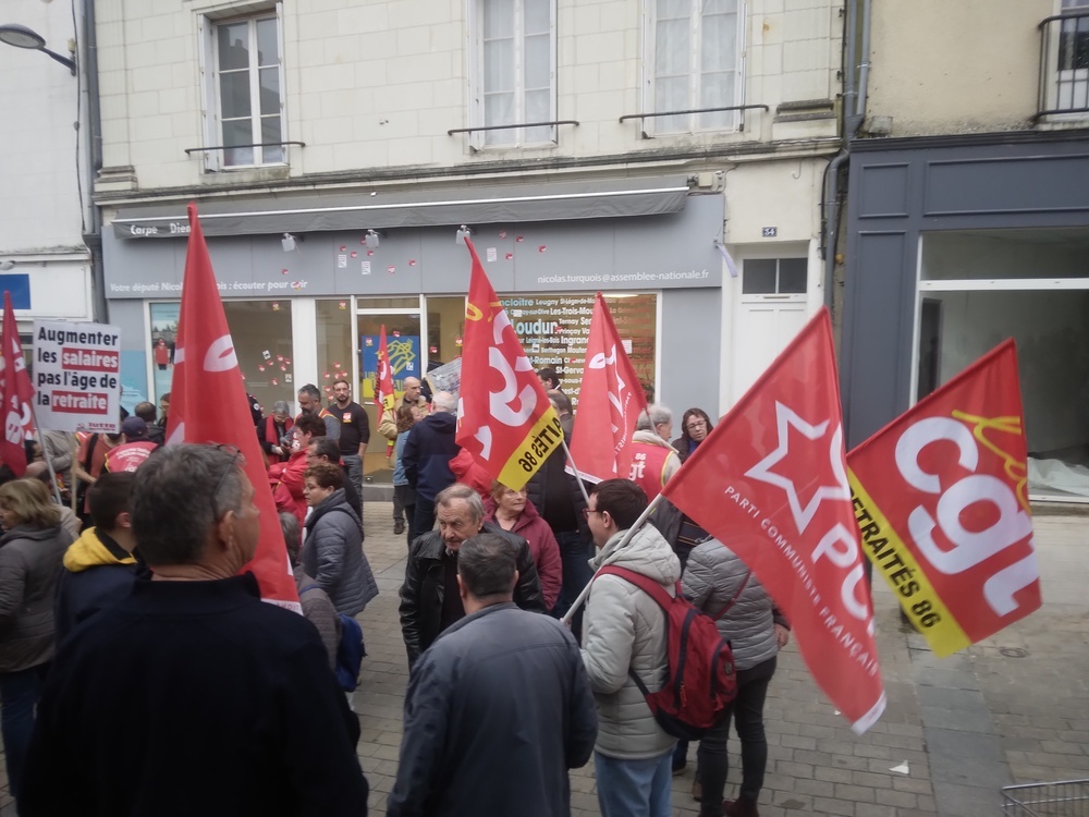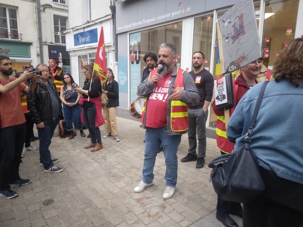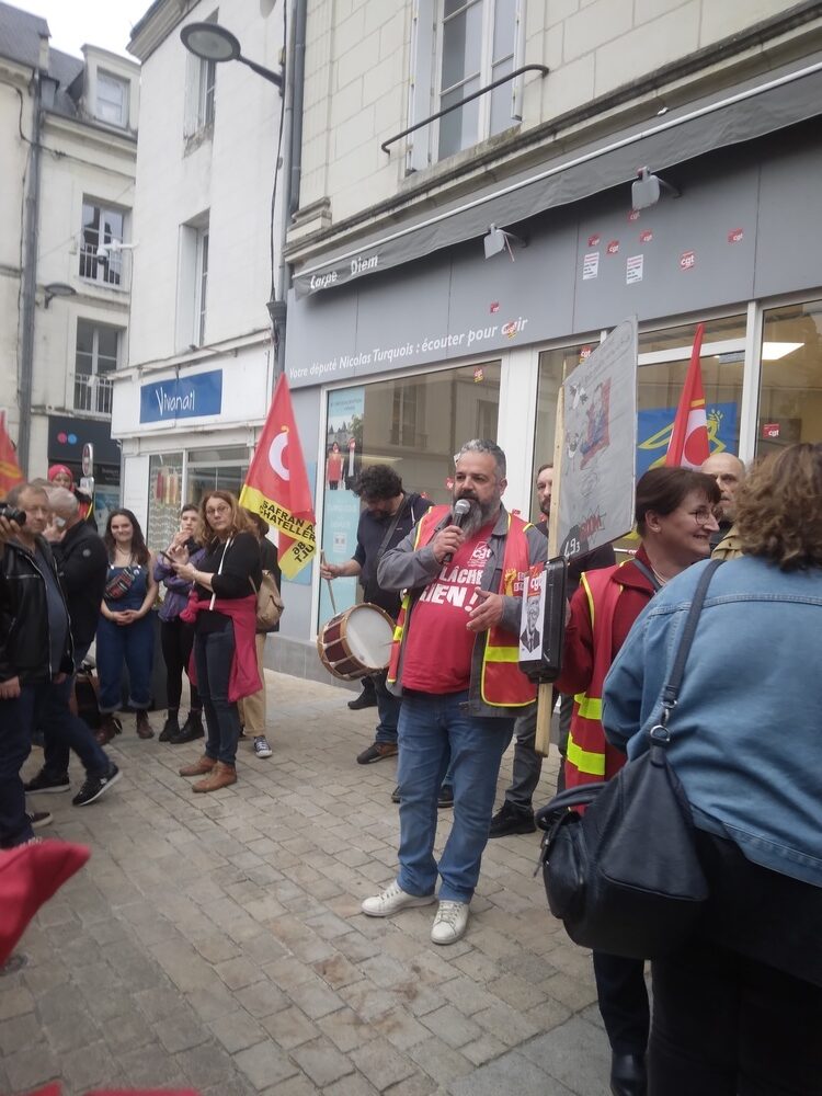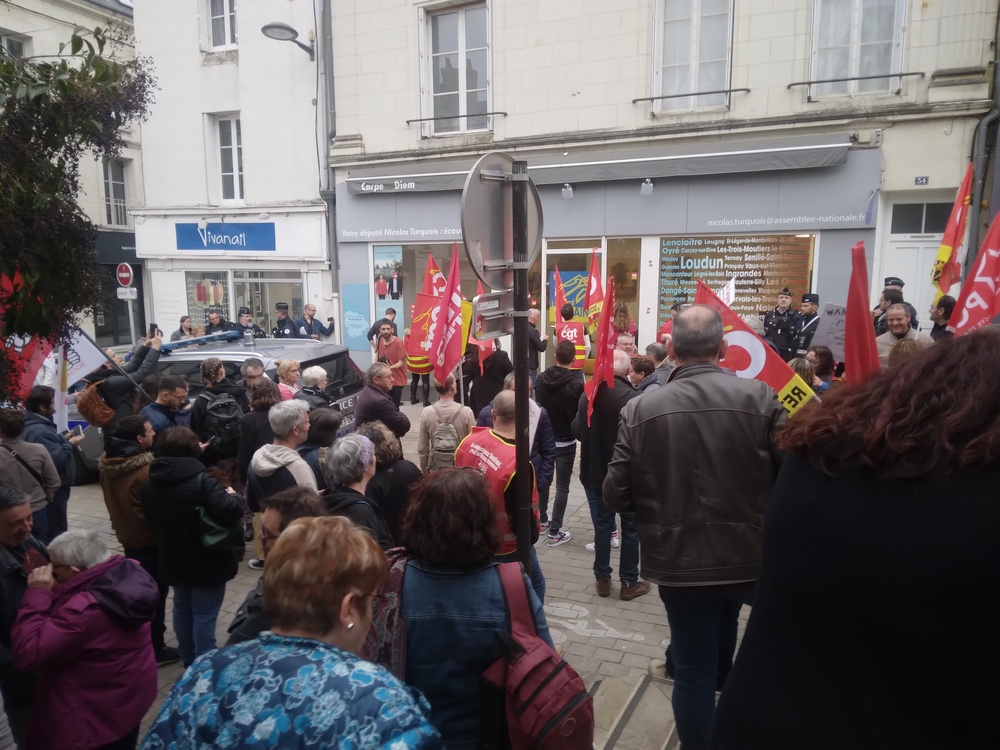 Ce rassemblement a d’abord eu lieu au kiosque à musique à 17 h 30, il a ensuite migré à 18 h. vers la permanence du député Renaissance Nicolas Turquois.