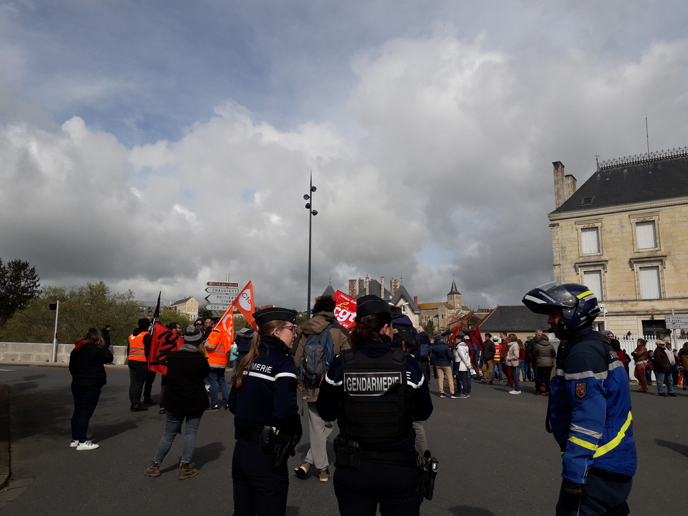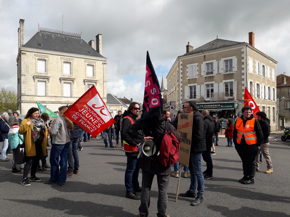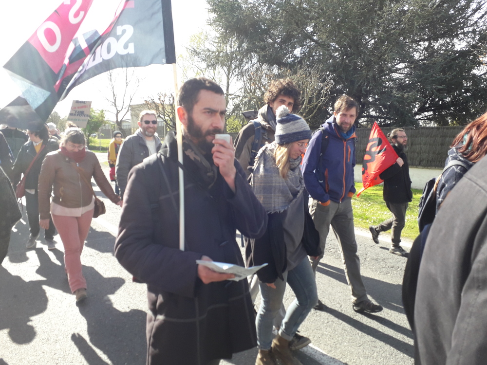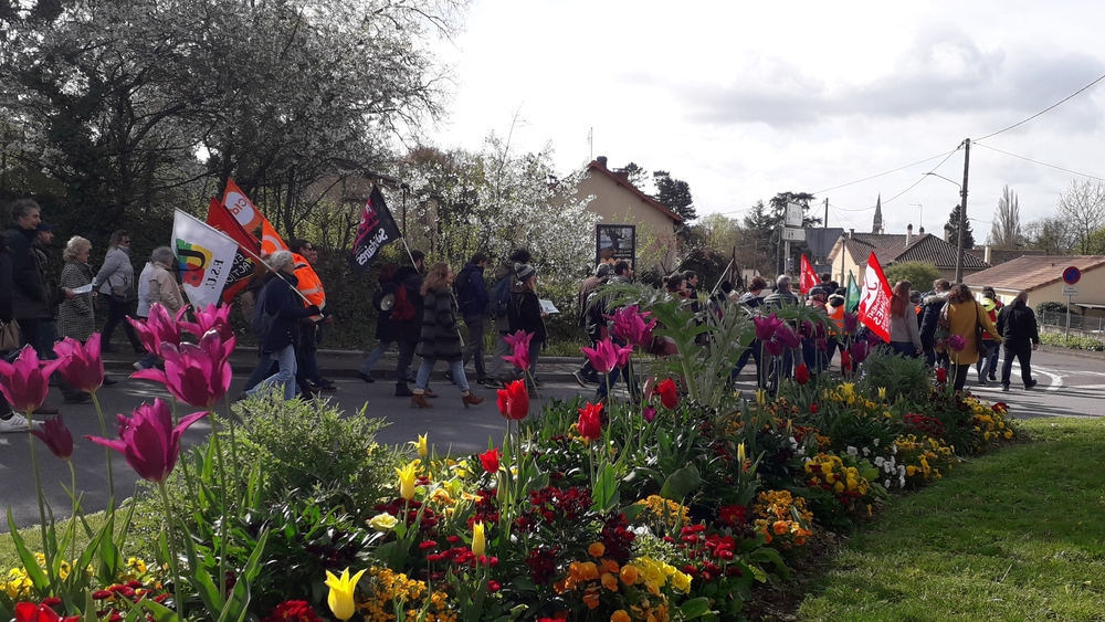 150 personnes derrière les drapeaux de la cgt, sud, cfdt, fsu, jc. Beaucoup de retraités solidaires, prêts à reprendre les chants lancés au mégaphone par un militant de Solidaires.