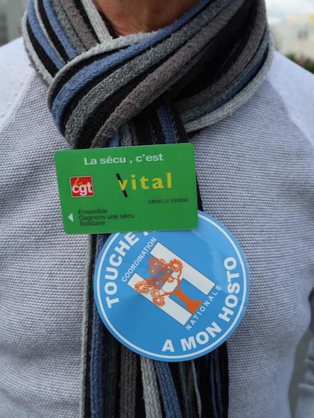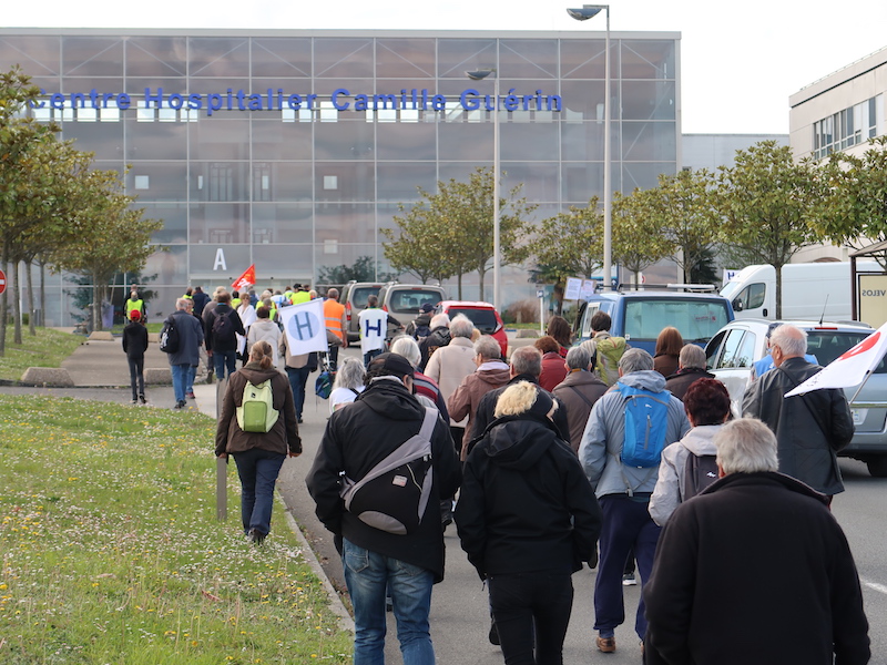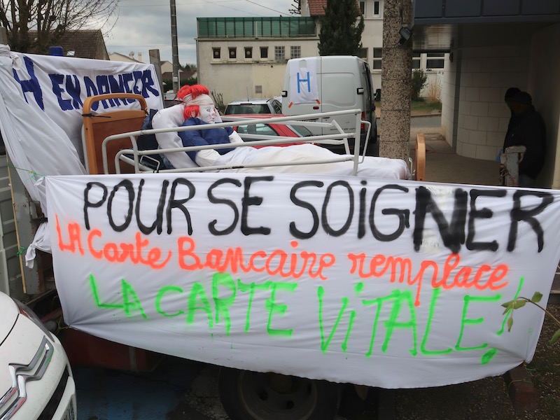 Joyeux raphus devant l’hôpital de Châtellerault, symbole de notre système public de santé menacé.