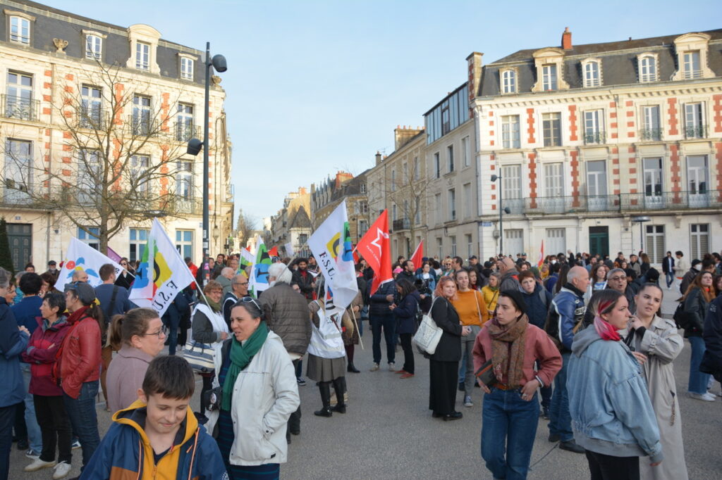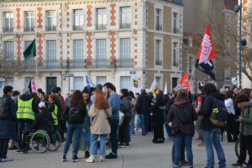 Retour d’une foule conséquente (300 à 400) devant la préfecture lundi 20 mars qui a rapidement gonflé après 18 h 30 : toujours beaucoup de jeunes, des syndicats bien présents (CFTC, CGT, CNT-SO, FSU, Solidaires) d’autres aux abonnés absents (CFDT, CGC) et une présence très discrète de FO. Du côté des politiques, présence de LFI, du MJC et du PCF.