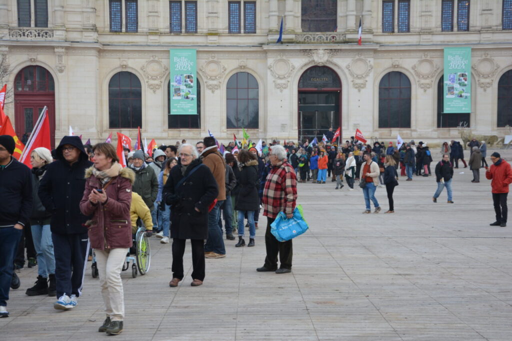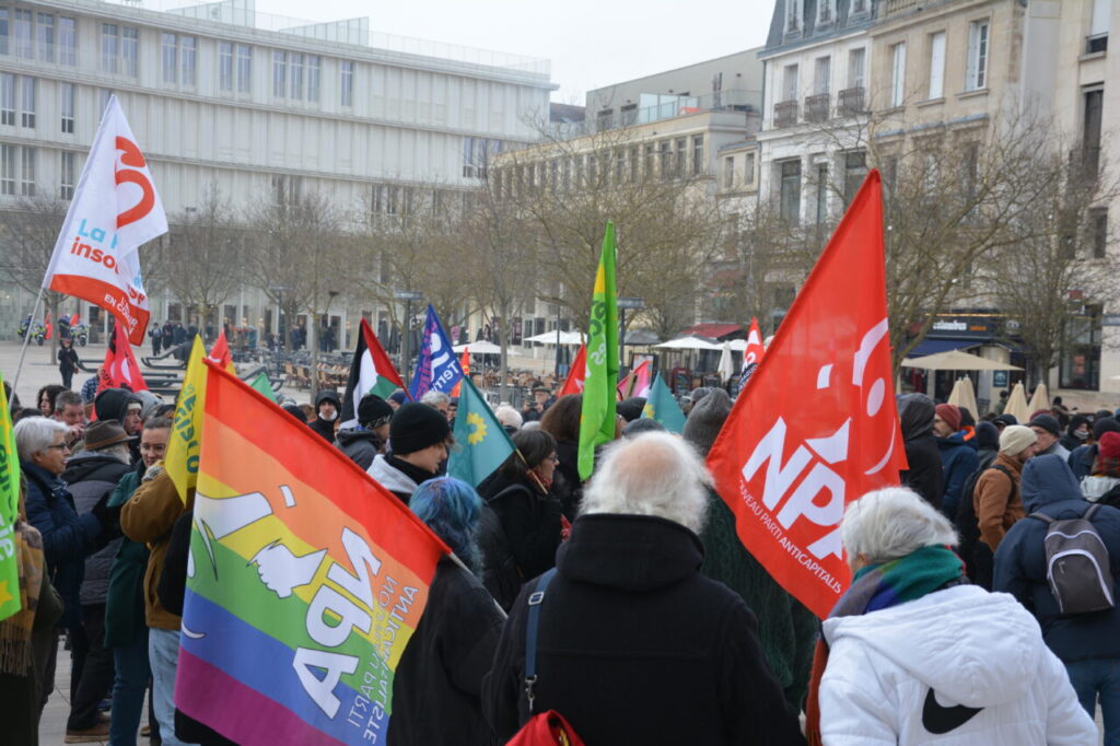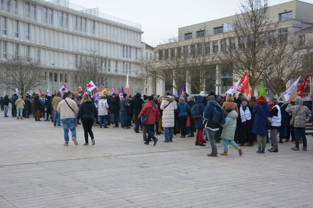 De nombreuses organisations politiques, syndicales, associatives étaient présentes dans un élan unitaire bienvenu ! Après un timide début de rassemblement, plus de 300 personnes ont bravé la froideur du moment en parcourant les rues piétonnes, avant de revenir place de la mairie. Là, commençait un deuxième rassemblement rappelant le drame palestinien qui se déroule depuis plus de 3 mois à Gaza et en Cisjordanie occupée. Une majorité de personnes de la première manifestation se sont associées à ce nouveau rassemblement.