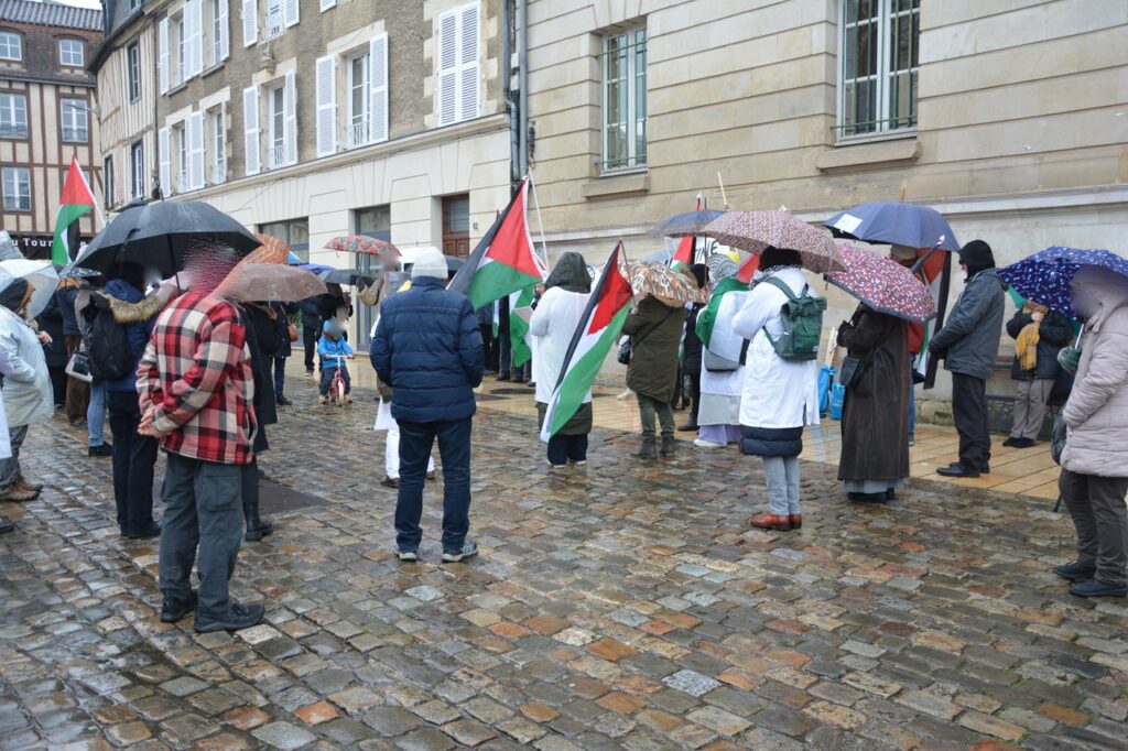 Nouvelle année, sans trêve ni arrêt des massacres en Palestine, à Gaza comme en Cisjordanie. Un nouveau rassemblement était organisé samedi 4 janvier place Notre-Dame à Poitiers, sous une pluie froide et tenace, des conditions que connait, dans des conditions autrement plus effroyables, la population palestinienne soumise aux bombardements incessants de l’armée israélienne, à la pluie, au froid, à la faim, à la terreur.
