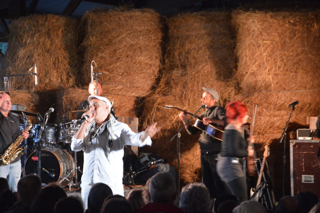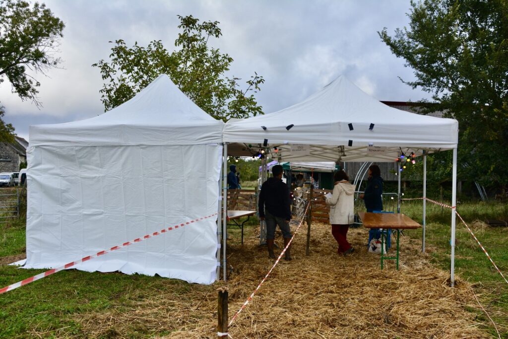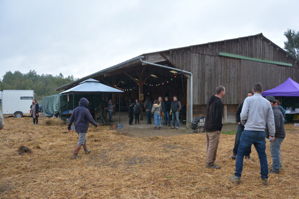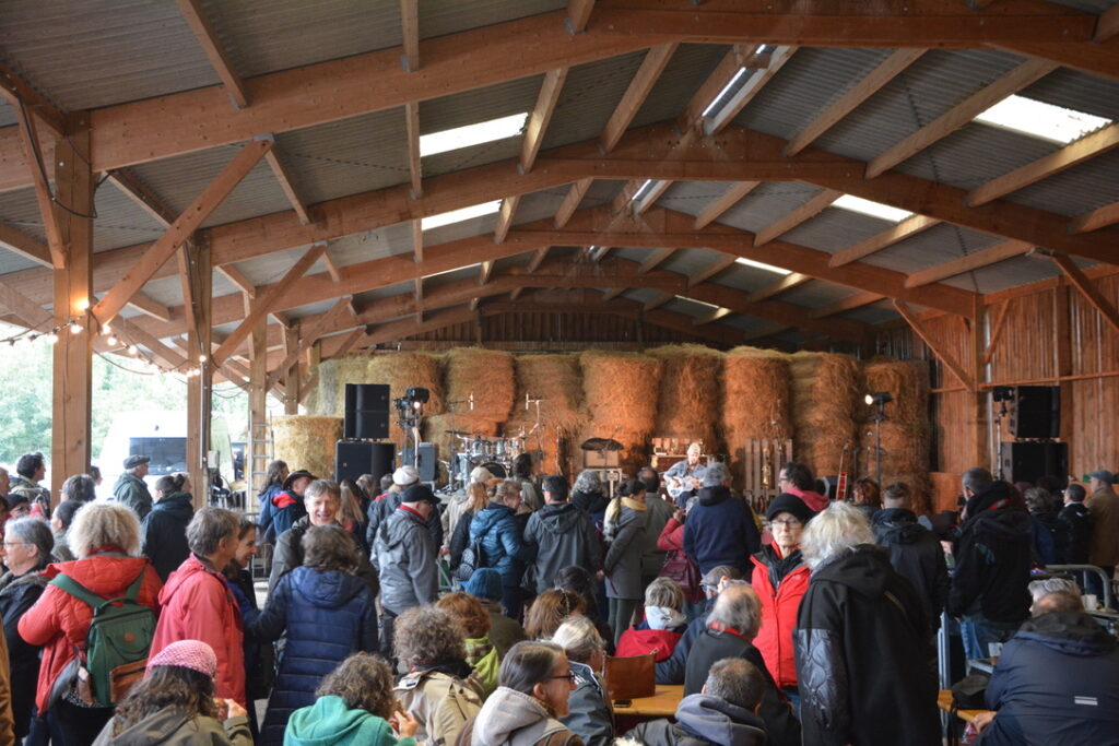 De l’inquiétude dans l’air… la météo de ces derniers jours donnait quelques soucis à l’équipe organisatrice de l’évènement. Alors, de la paille avait été étalée aux abords du site, du remblai sur les chemins d’accès : du boulot en plus pour les 70 bénévoles travaillant depuis plusieurs jours dans la ferme de l’Anguillé, qui accueillait ce marché et bal paysan à l’initiative de l’Atelier des possibles de Pleumartin (https://atelier-des-possibles-86.fr/). En vedette bien sûr, « HK et les Saltimbanques » qui sillonnent depuis des années, les villes, les campagnes et les manifs aussi.