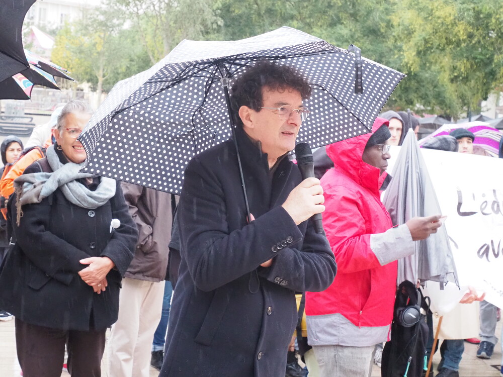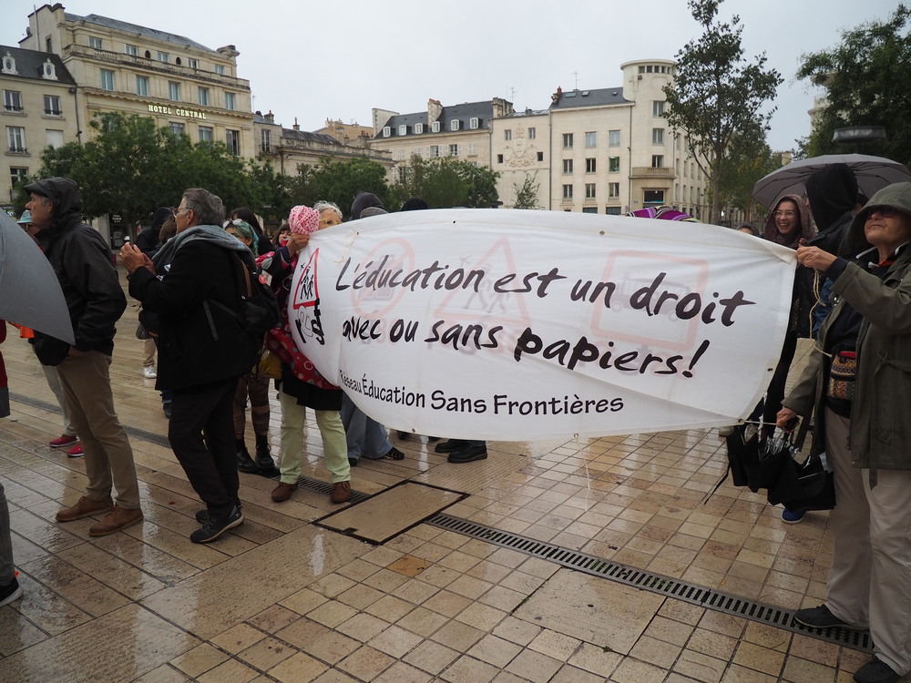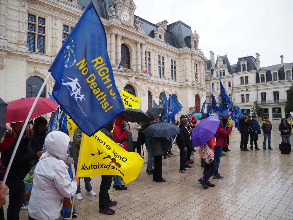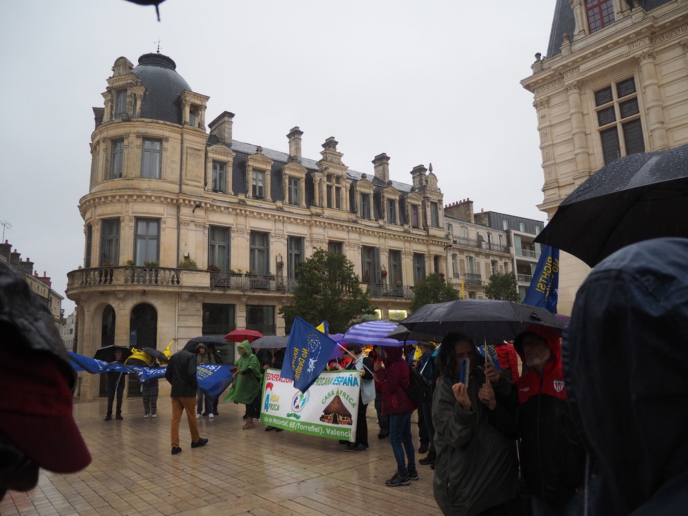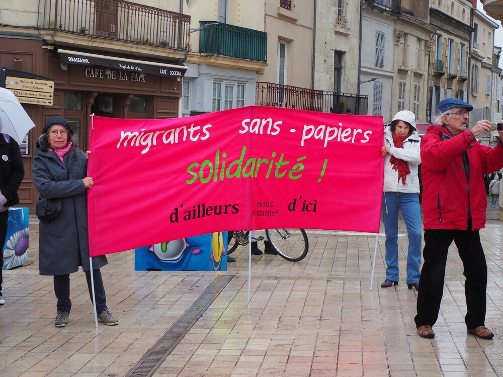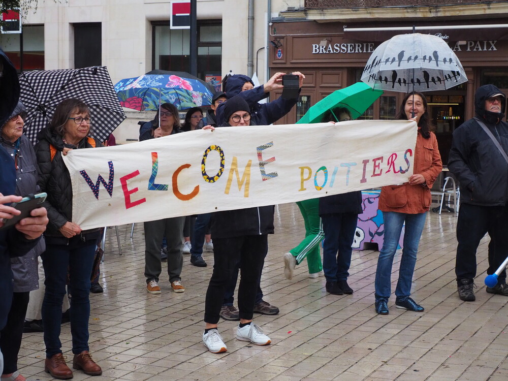 La batuca de Science Po les a accueillis ainsi que Léonor Moncond’huy, la maire de Poitiers, Vincent GATEL, son adjoint à la Ville accueillante, et toutes associations qui œuvrent au quotidien dans la Vienne pour les droits des migrant-es dans un contexte marqué par la montée partout de l’extrême droite (Suède, Italie, France… ) et un gouvernement français qui utilise le thème de l’immigration pour diviser la population.
