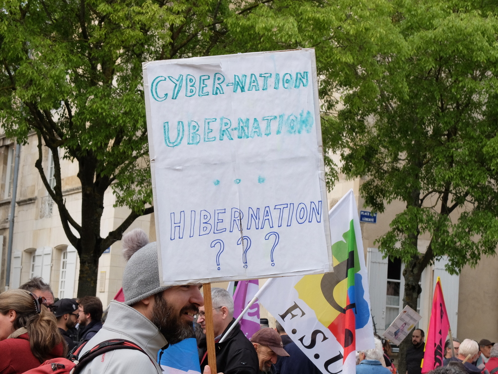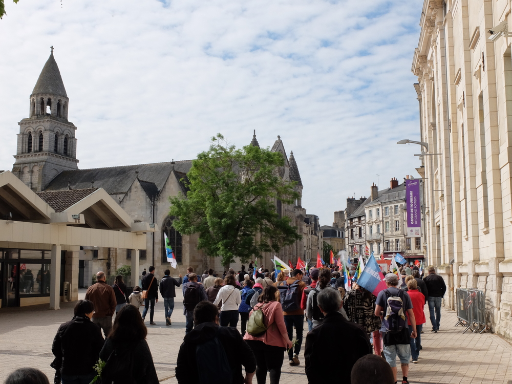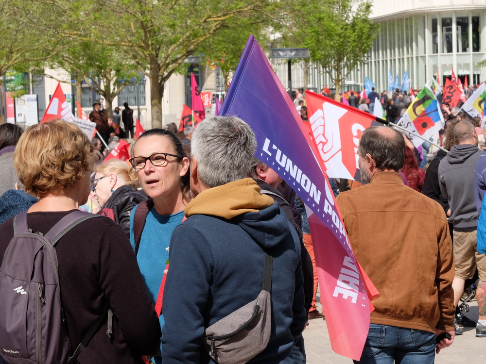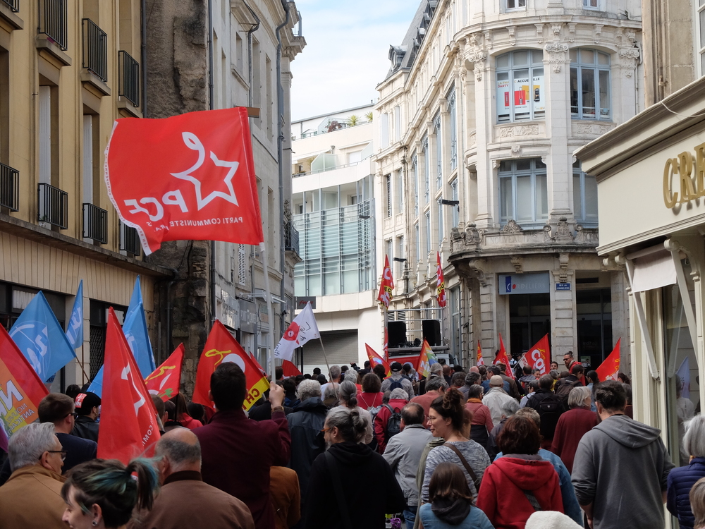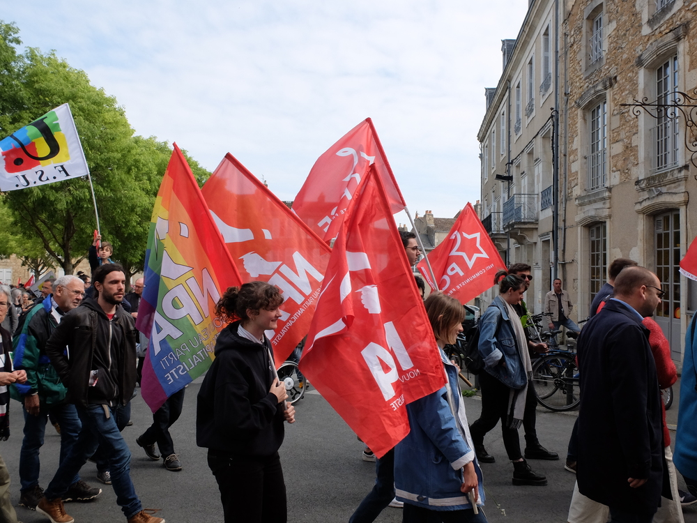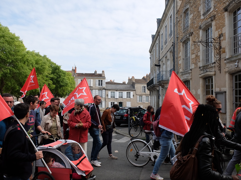 En début de cortège fut lue une déclaration sur la situation en Palestine (que nous publierons prochainement) et en fin de cortège les déclarations syndicales étaient orientées à la lutte et au rapport de force contre le néo-libéralisme sous sa forme macronienne.