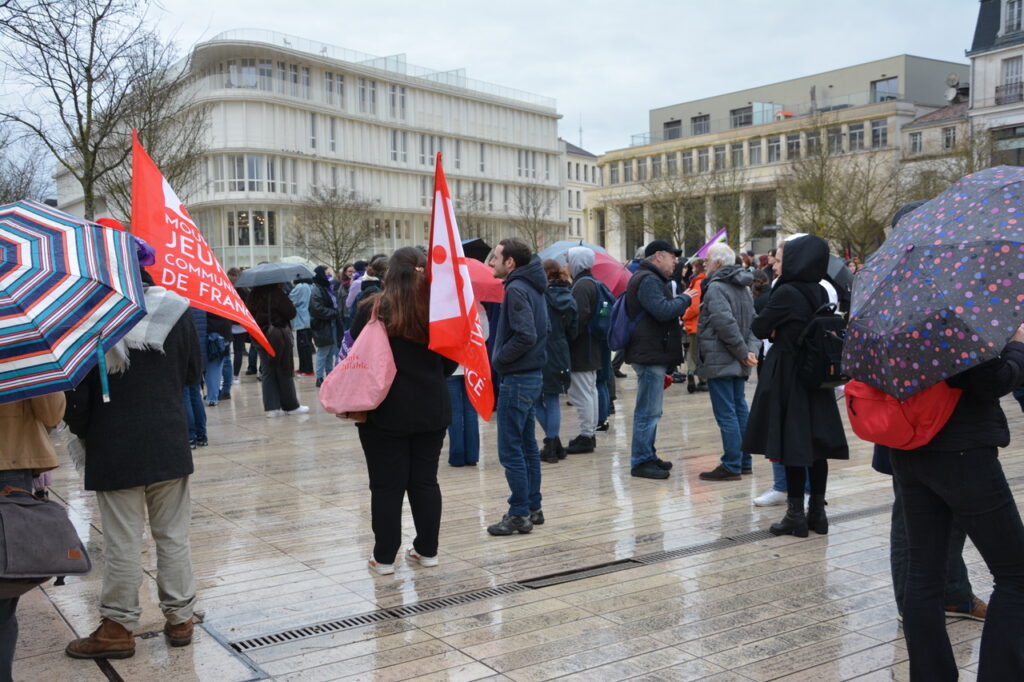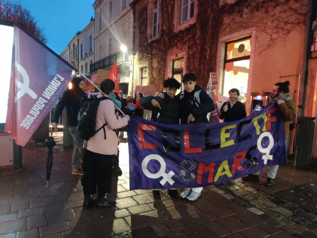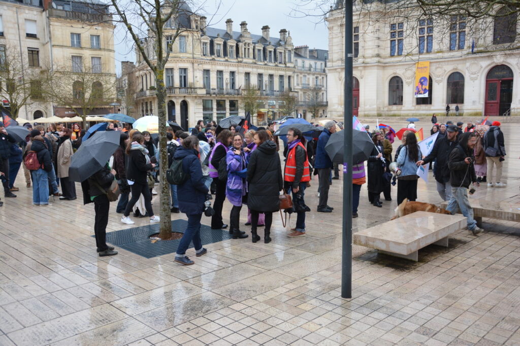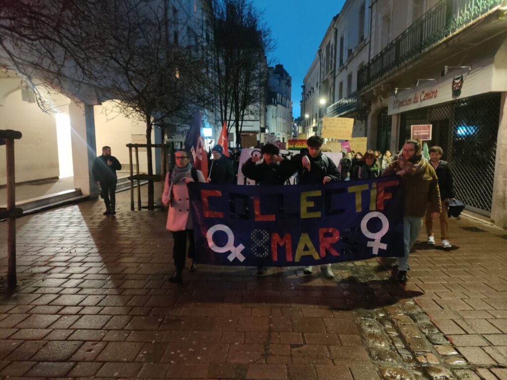 Plusieurs prises de parole se sont succédées et un rappel du programme de la journée avec plusieurs concerts à « L’envers du bocal » en soirée. Une première déambulation à l’initiative des organisations syndicales a démarré à 16 h 30 place de la mairie avant d’emprunter les rues piétonnes, un grand classique poitevin et retour sur la même place ! Avant une deuxième marche à 18 h à l’appel du collectif du 8 mars. Et la soirée continue…