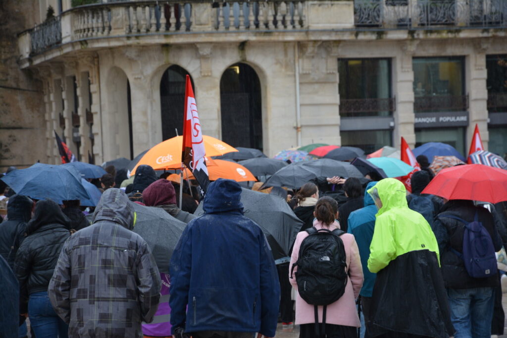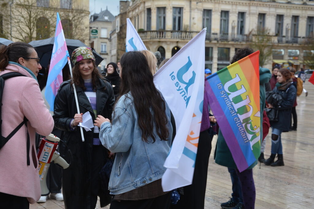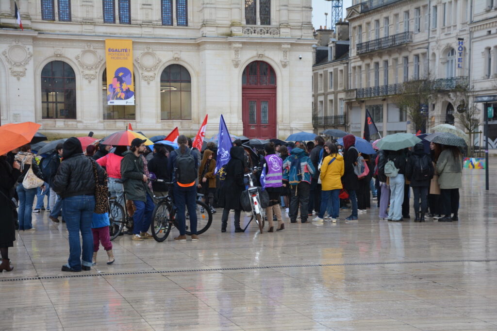 Pas gâté par le temps : ce 8 mars, journée internationale des droits des femmes a été gâché par une météo poitevine bien pluvieuse ! Pas de quoi décourager les 200 personnes présentes, mais on a connu des rassemblements plus conséquents à Poitiers les années passées.