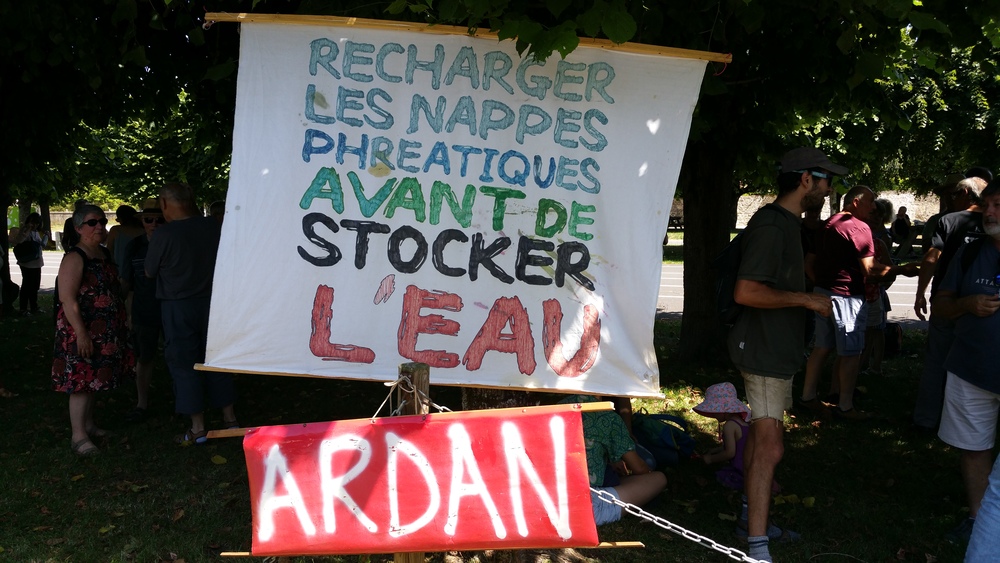 Ce furent donc plus de 200 personnes qui ont écouté les prises de paroles (qui ont été filmé) avant se se rendre sous un soleil écrasant sur le lieu d’une possible future bassine.