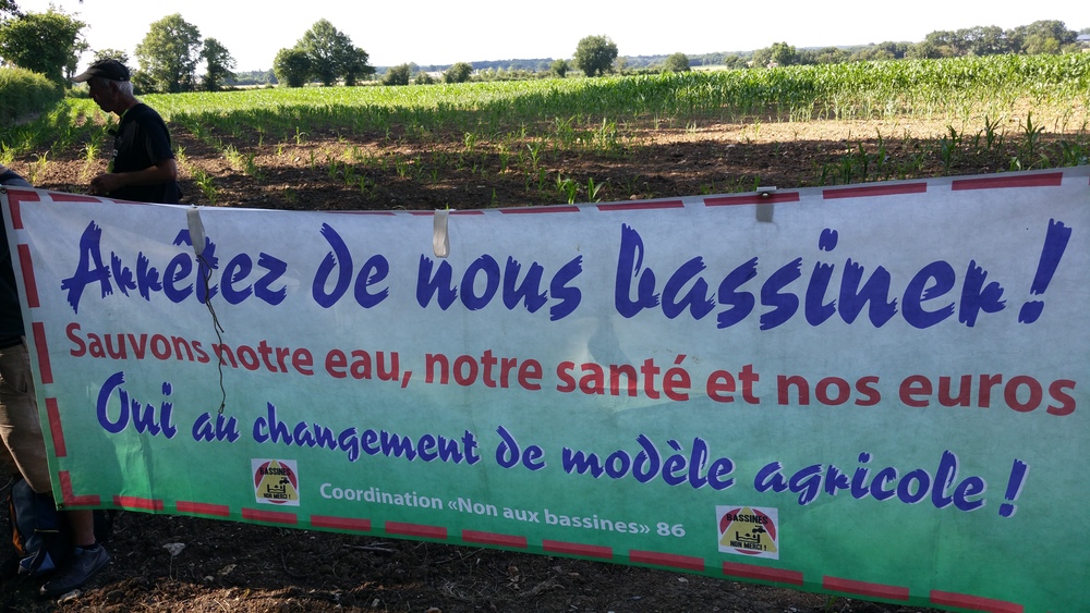 La ressource en eau – va-t-on avoir des coupures d’eau potable cet été dans la Vienne ? – diminue et il est scandaleux qu’une poignée de patrons de l’agrobusiness (4%) monopolise et pollue des milliers de m3 d’eau des nappes phréatiques pour des cultures d’exportation alors que cette ressource manque pour les autres cultures, pour la nature et pour la consommation humaine. L’eau n’est pas une marchandise. L’État, ici la Préfecture, pour l’instant et de façon active, privilégie ce modèle agricole et ce patronat.