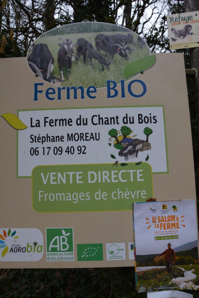 - la première avec Stéphane Moreau, éleveur de chèvres poitevines et qui accueillait l’évènement dans sa ferme « Le chant du bois » qui présente la démarche du « Salon » local,